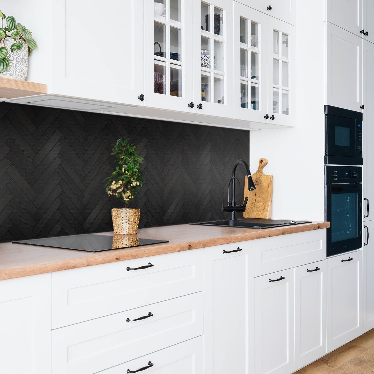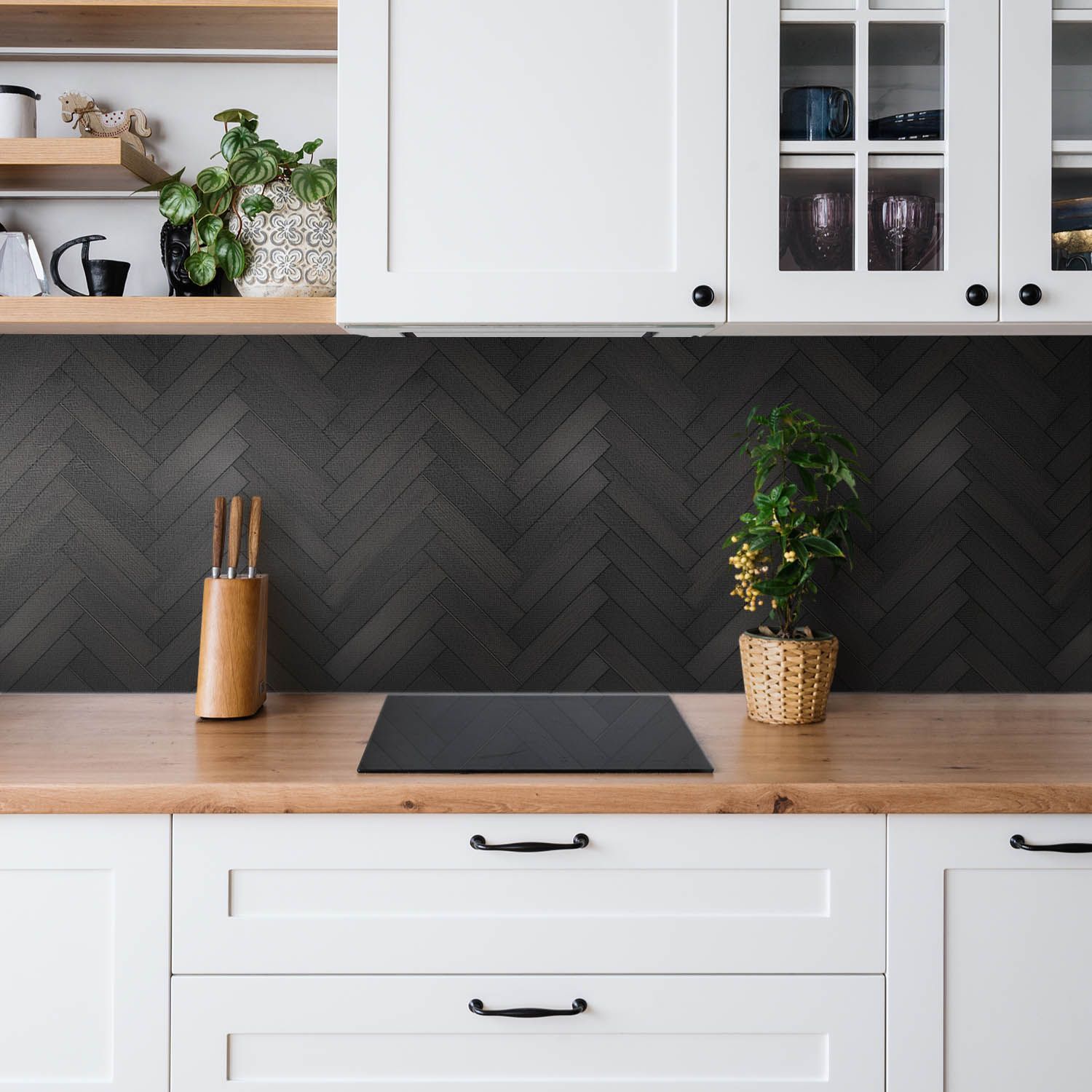 Tulup Vinyl Wandpaneel 100x50 cm - Dunkles Parkett, Schwarz