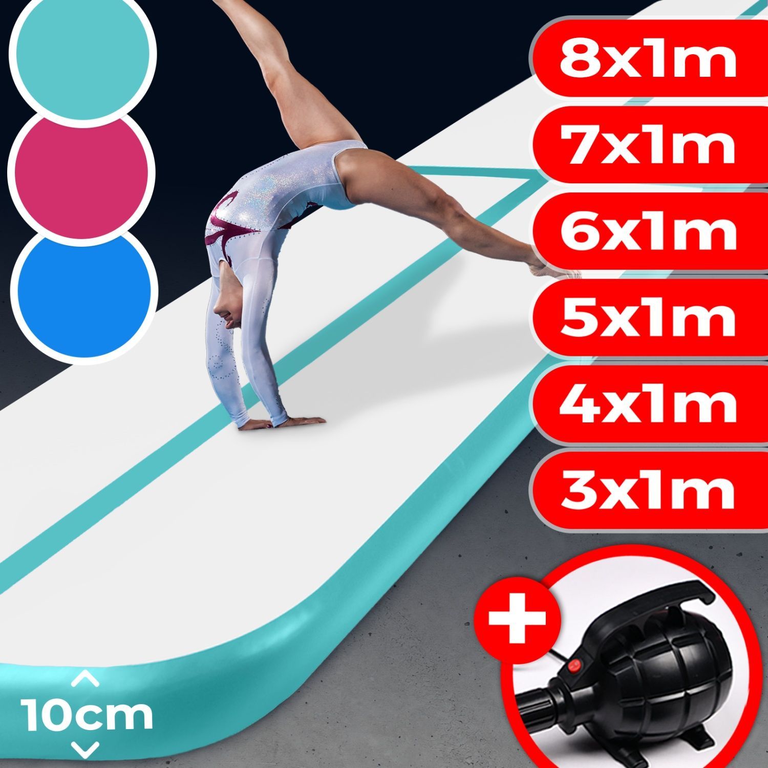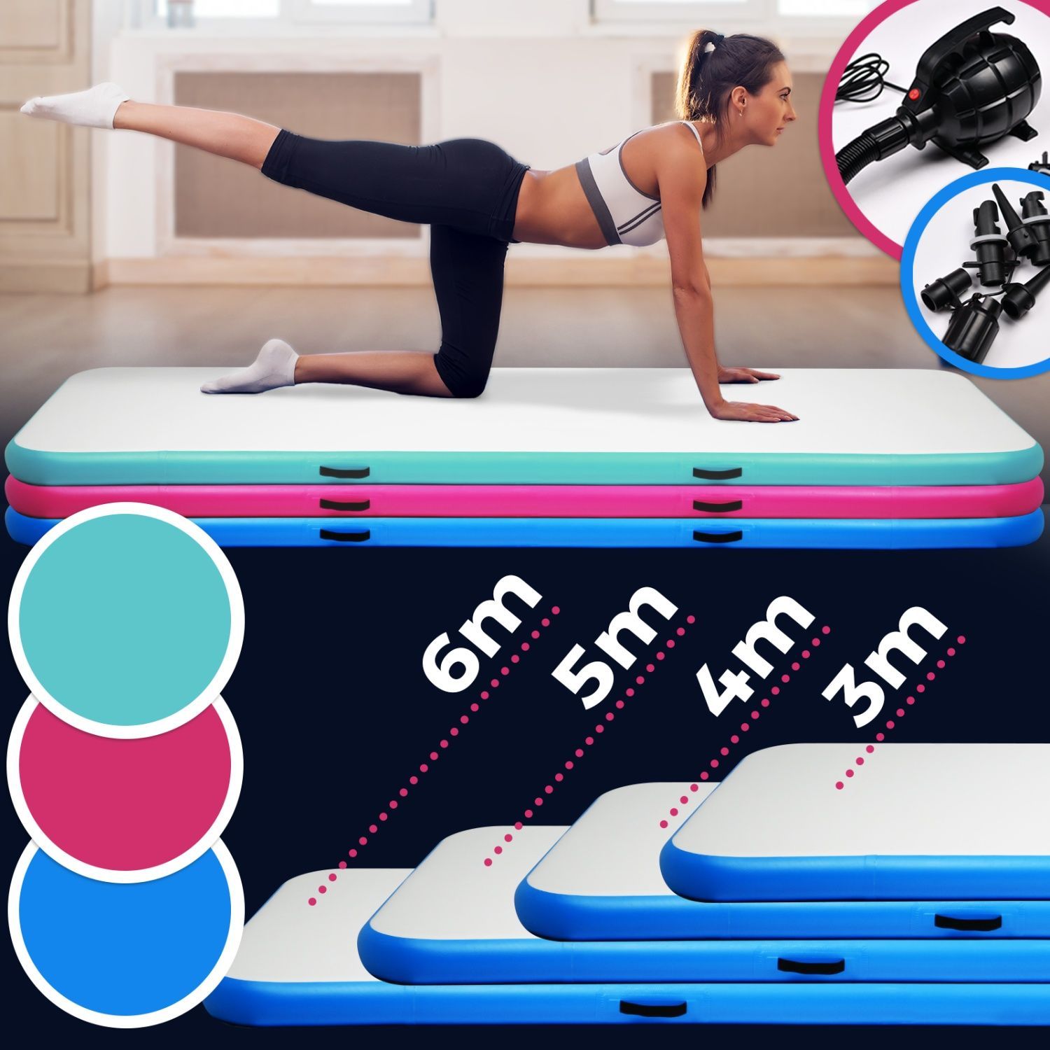 Tumbling Air Matte Track Turnmatte Gymnastikmatte Pumpe aufblasbar 3 4 5 6 7 8 m