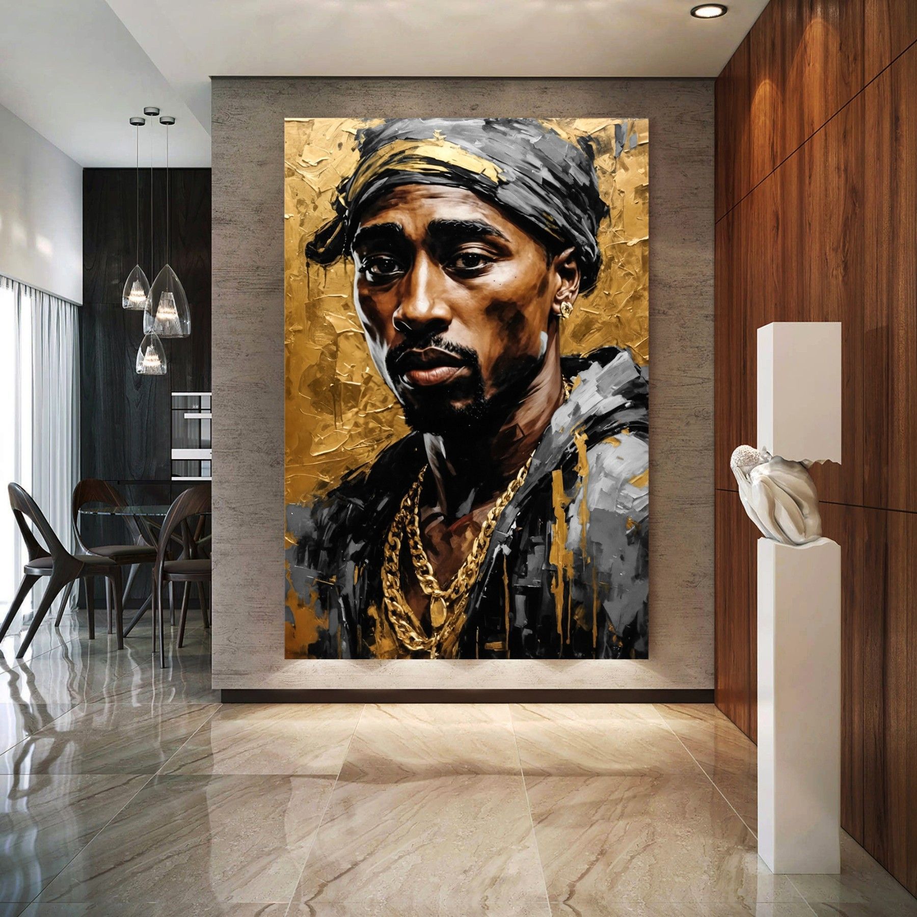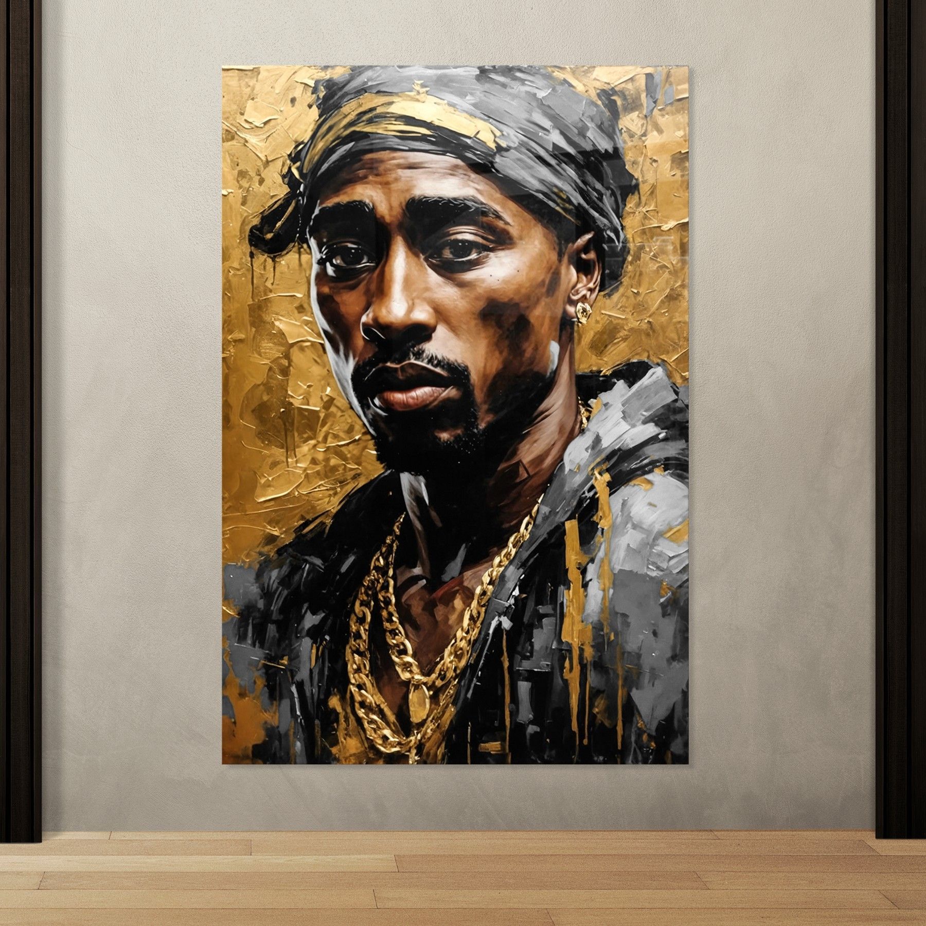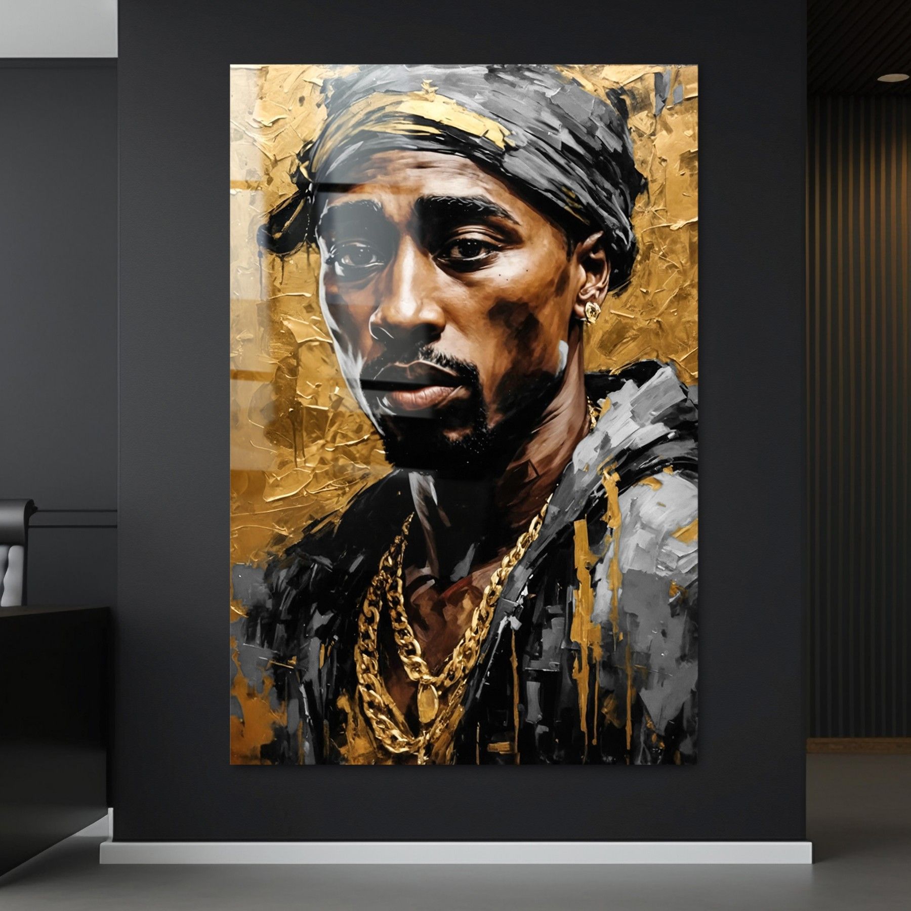 Tupac Shakur Rapper Musiker Kunst Gold, Wandbild Leinwand, Acrylglas oder Poster