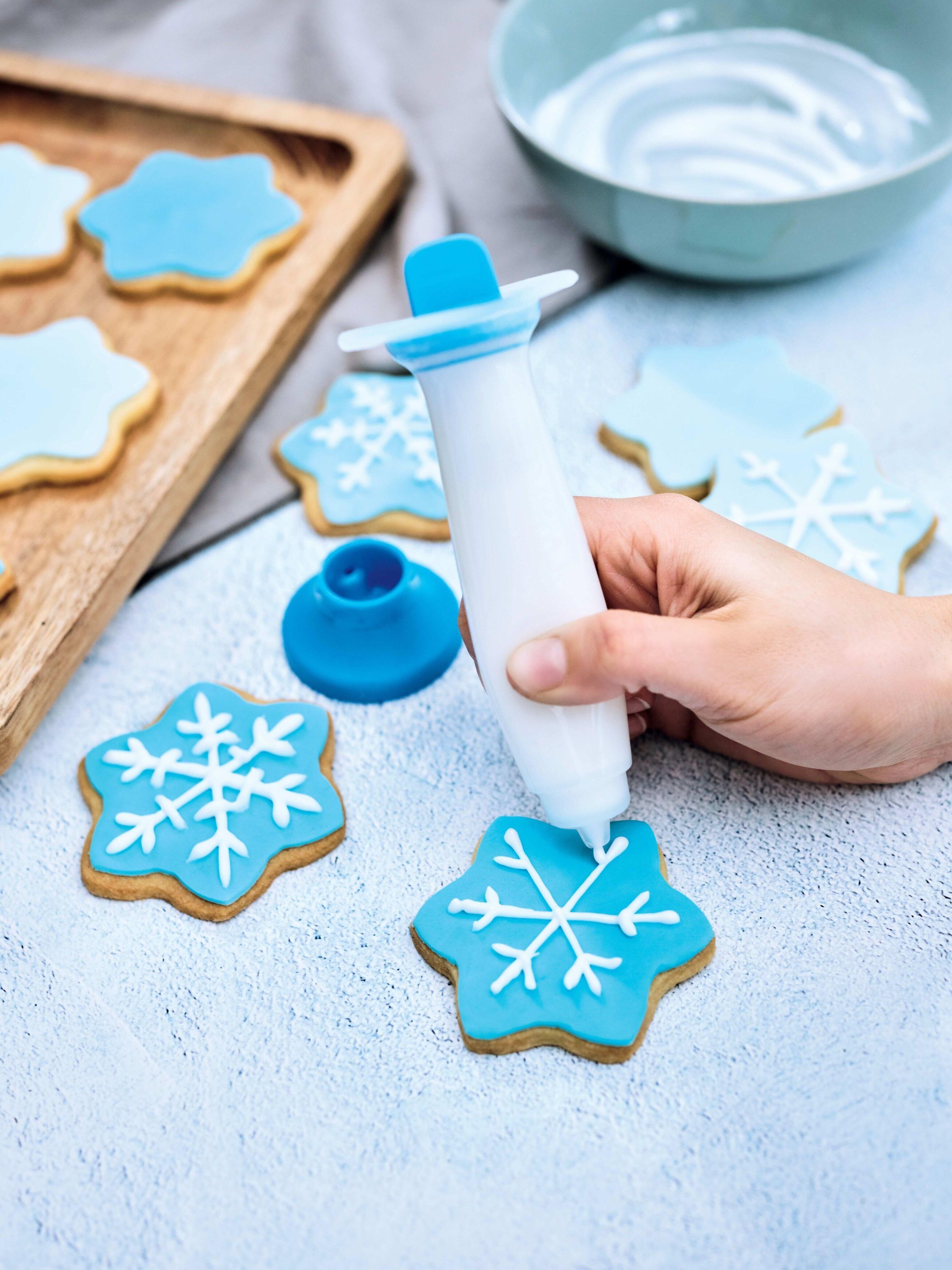 Dekozauber blau Dekorieren Sie Gebäck, Kekse und Kuchen wie ein Profi mit dem Dekozauber ! Mit ihm können Sie dekorative Schnörkel, Muster und süße Botschaften kreieren. Und gewöhnliches Gebäck in etwas ganz Besonderes verwandeln. Mit einem Fassungsvermögen von 65 ml ist der Dekozauber weder zu groß