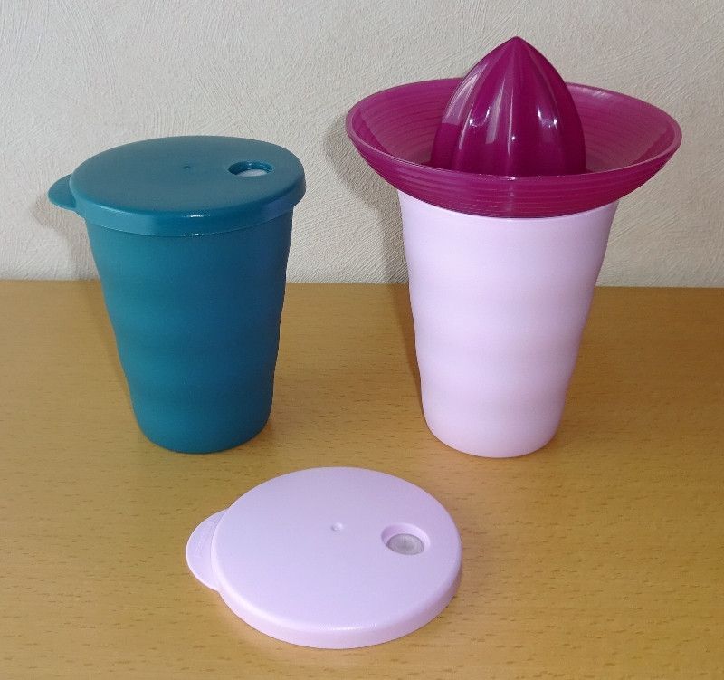 Tupperware * * Junge Welle Trinkhalm-Becher (2) & Zitruspresse * * Rosa/ Petrol/ Pink