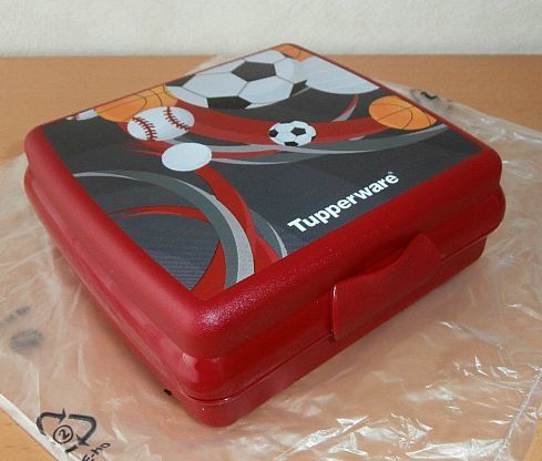 Tupperware Tupperware® * * Quadratische Sandwich-Box / Brotdose * * Motiv Ball/ Fußball - ROT