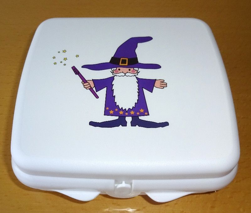 Tupperware Tupperware® * * Quadratische Sandwich-Box / Brotdose * * Motiv Zauberer- WEISS