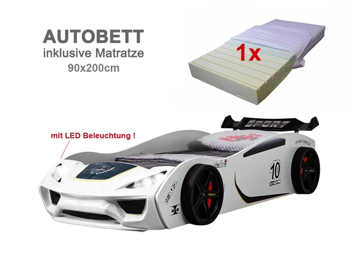 byMM Turbo V2 Drift Autobett 90x200cm mit LED Beleuchtung weiß