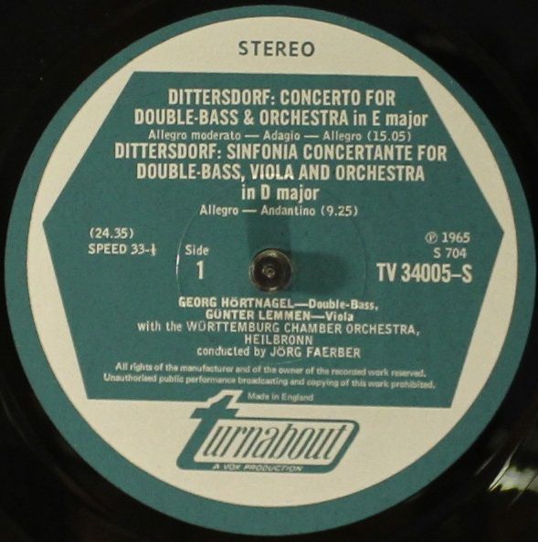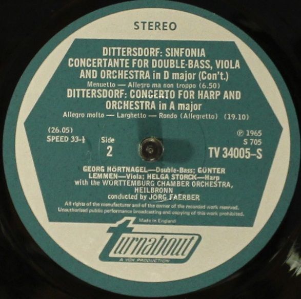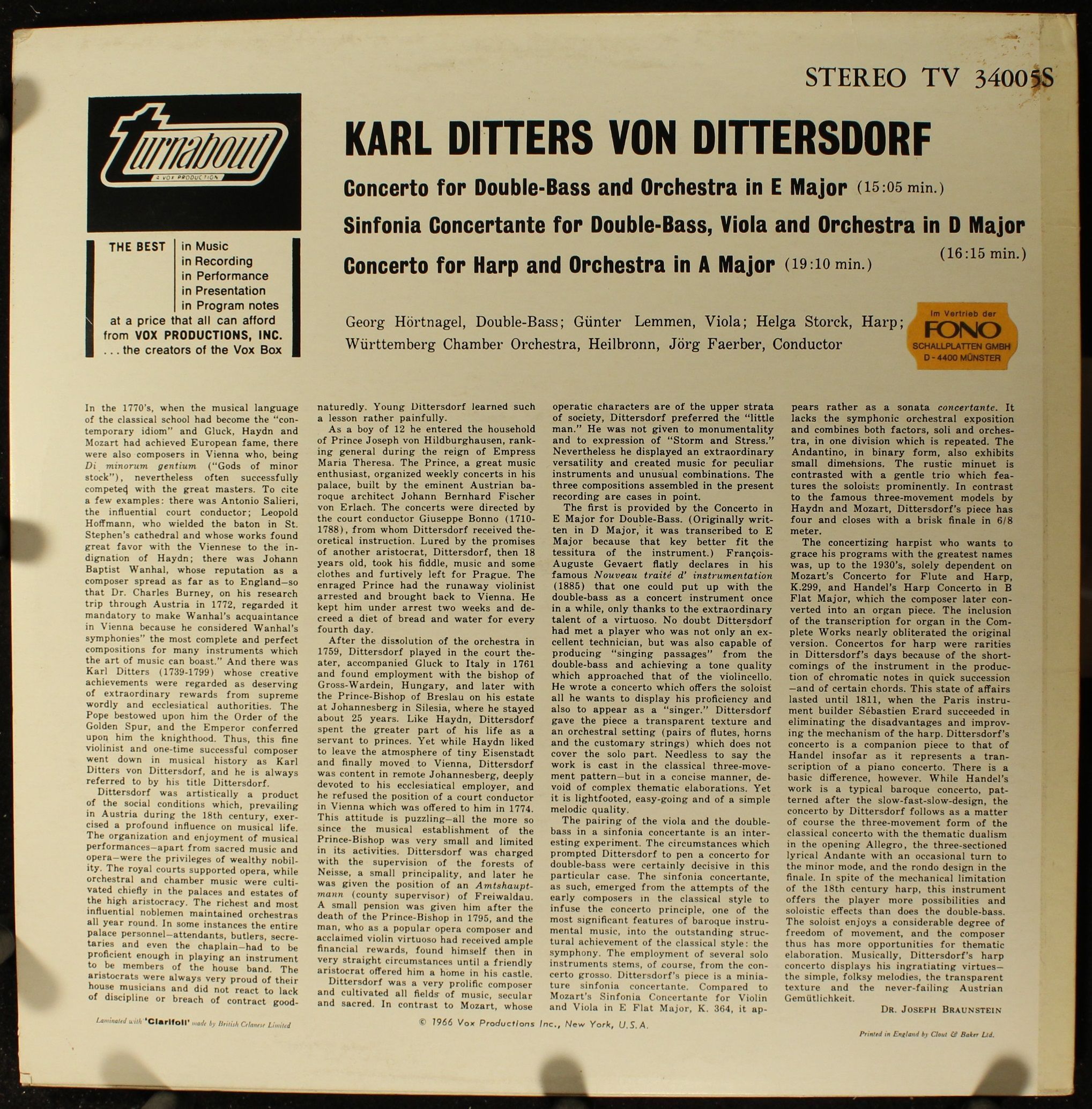 Turnabout TV 34005S - Carl Ditters von Dittersdorf, Georg Hörtnagel, Günther L