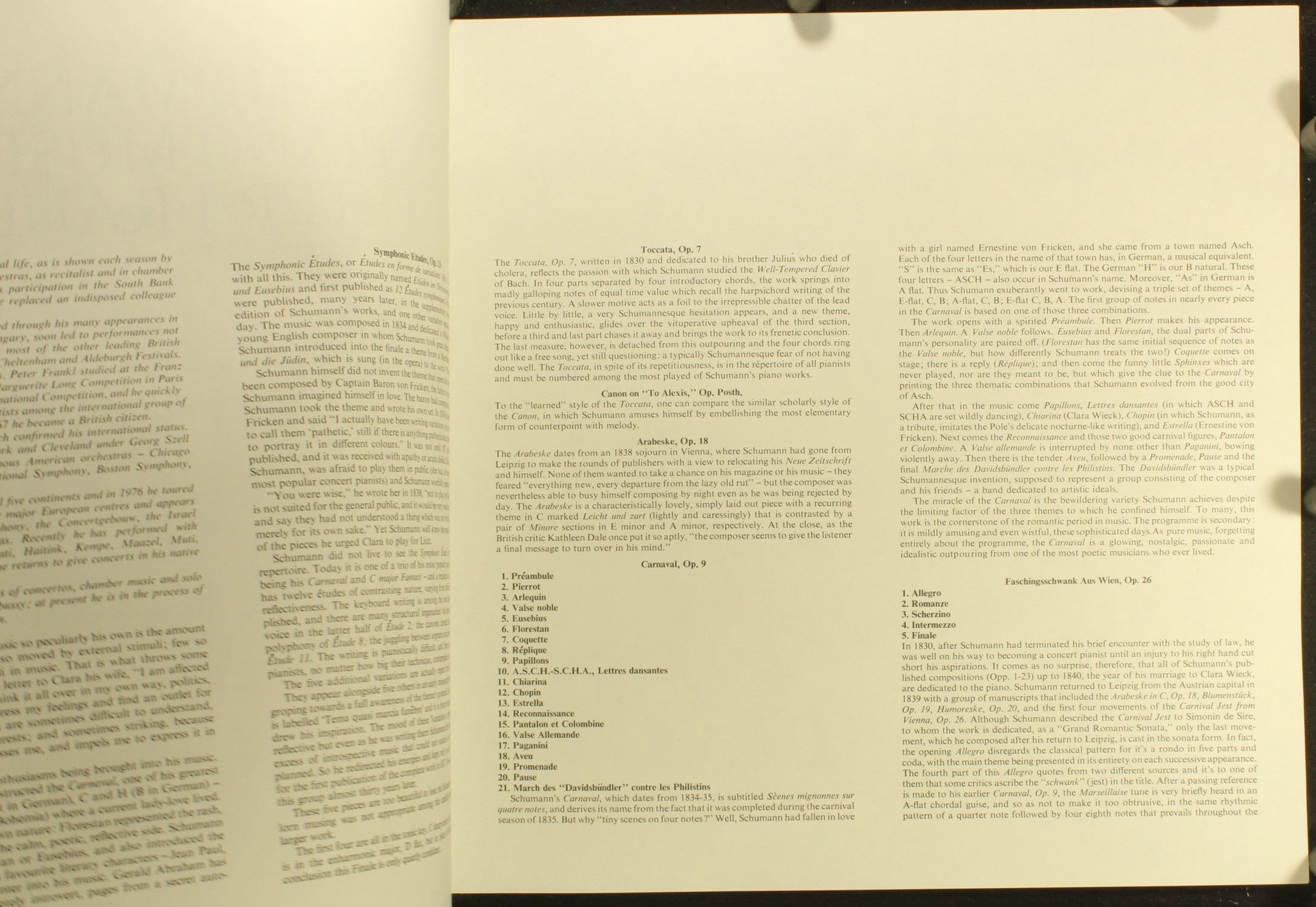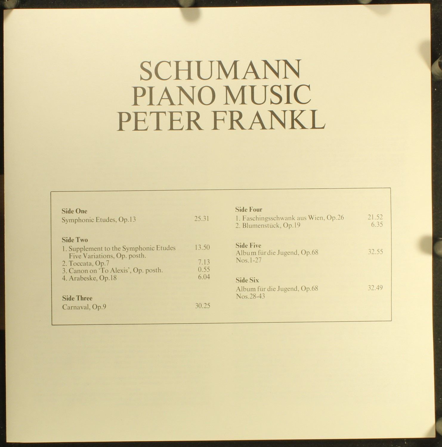 Condition Vinyl Near Mint (NM or M-) Condition Sleeve Near Mint (NM or M-) Tracks included: I Symphonic Études, Op. 13 II 1. Supplement To The Symphonic Études - Five Variations, Op. Posth. 2. Toccata, Op. 7 3. Canon On & 039;To Alexis& 039;, Op. Posth. 4. Arabeske, Op. 18 III a. Pr&ea