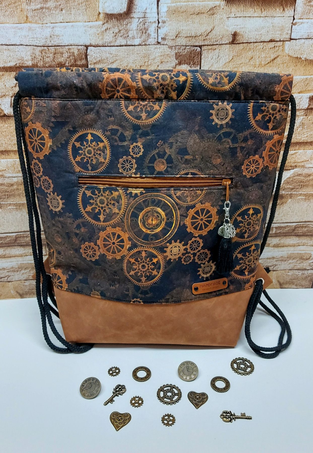 Turnbeutel Damenrucksack Beuteltasche Cityrucksack in trendigem Muster - Steampunk