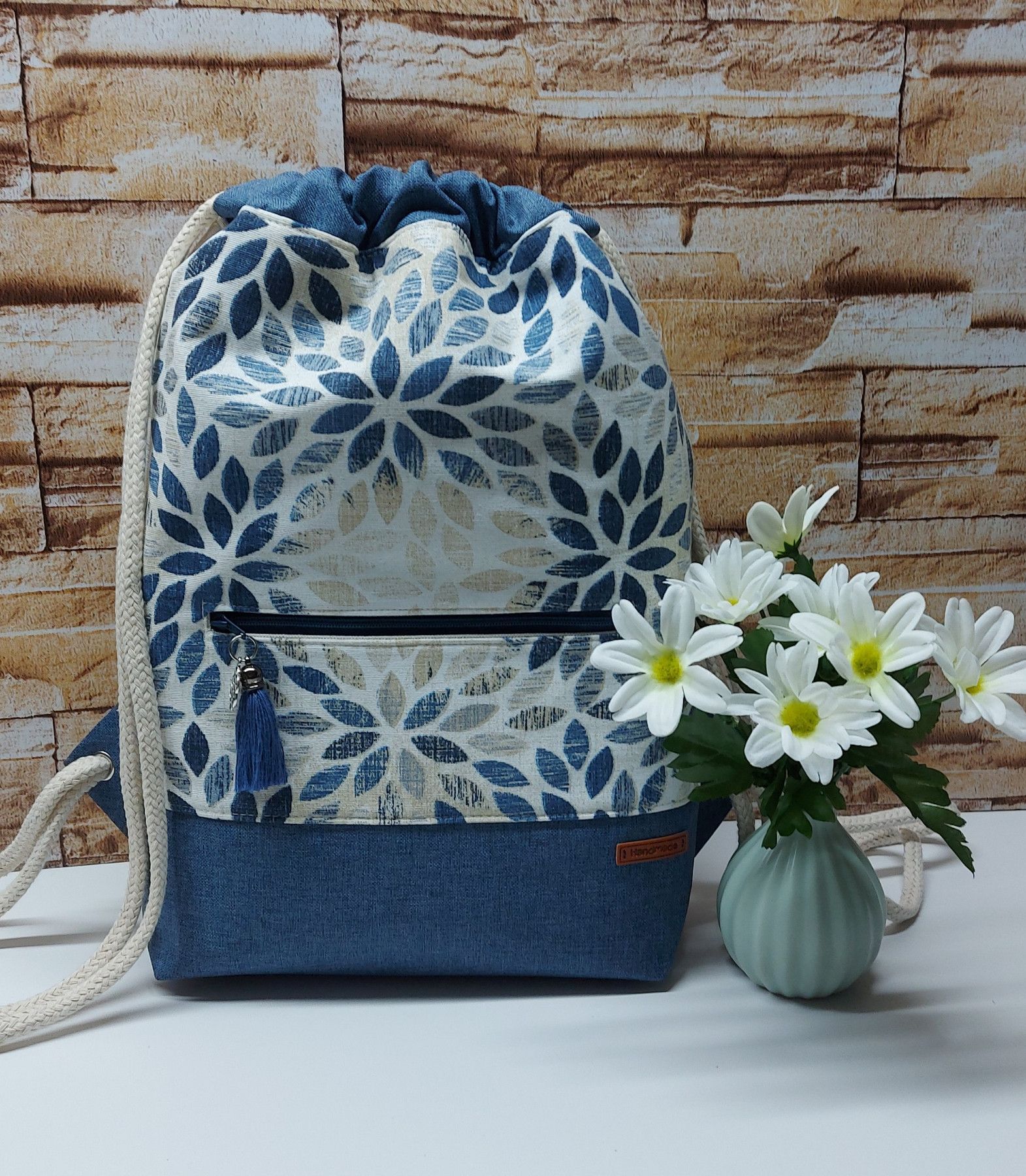 Turnbeutel, Damenrucksack - Blumenmandala - blau