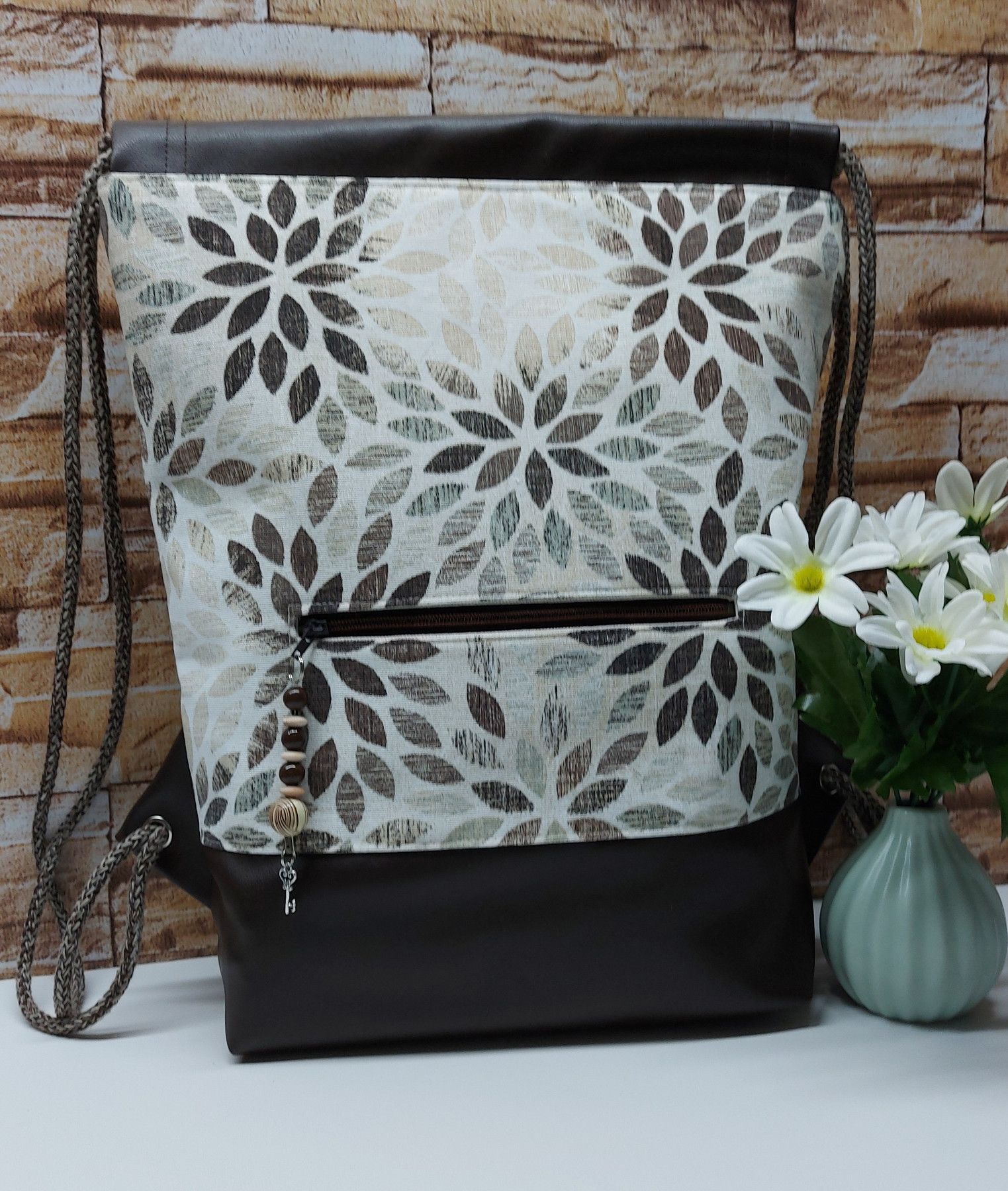 Turnbeutel, Damenrucksack - Blumenmandala - braun