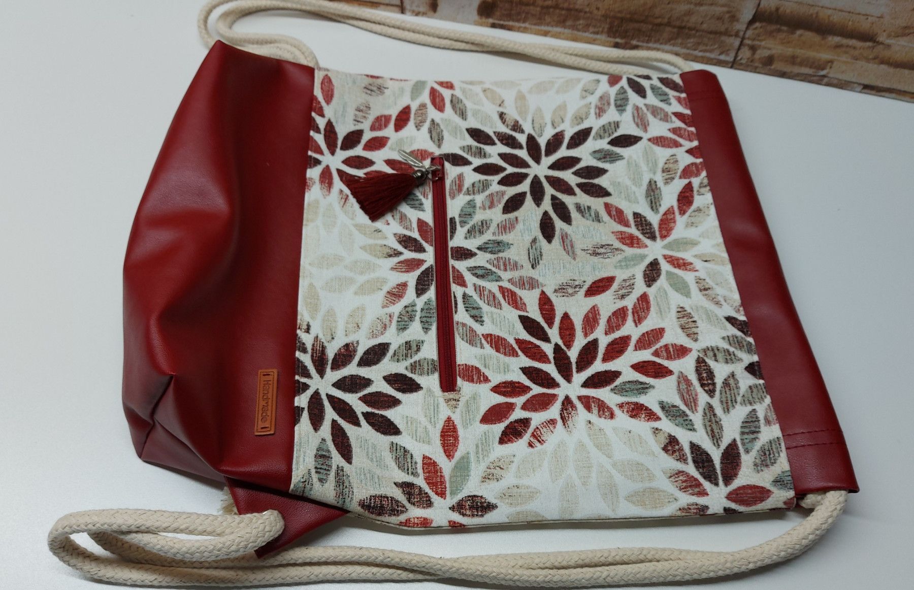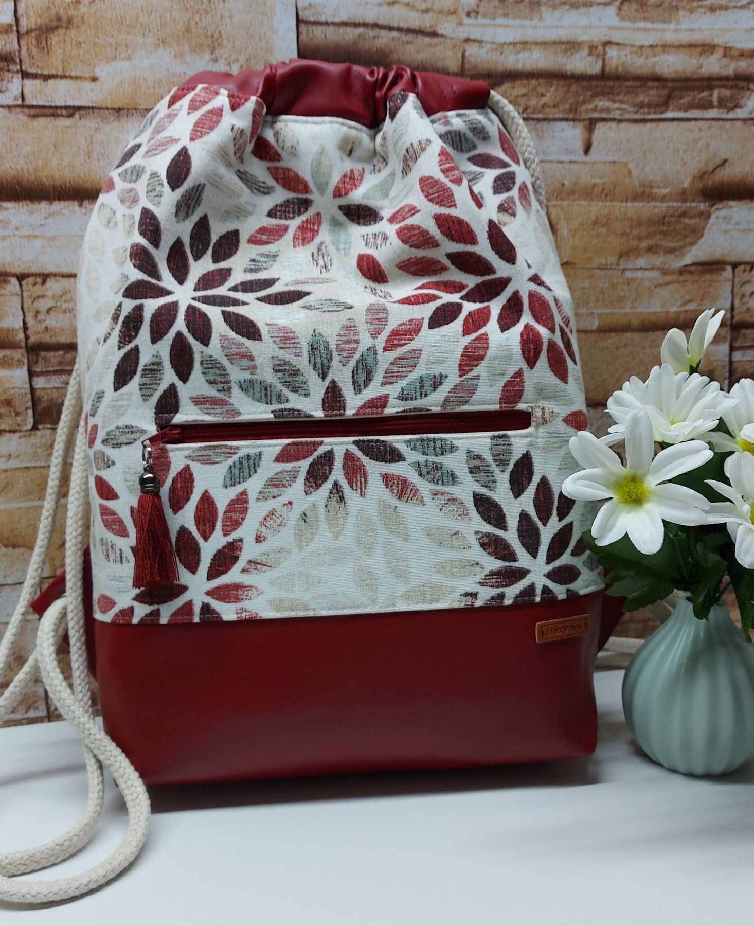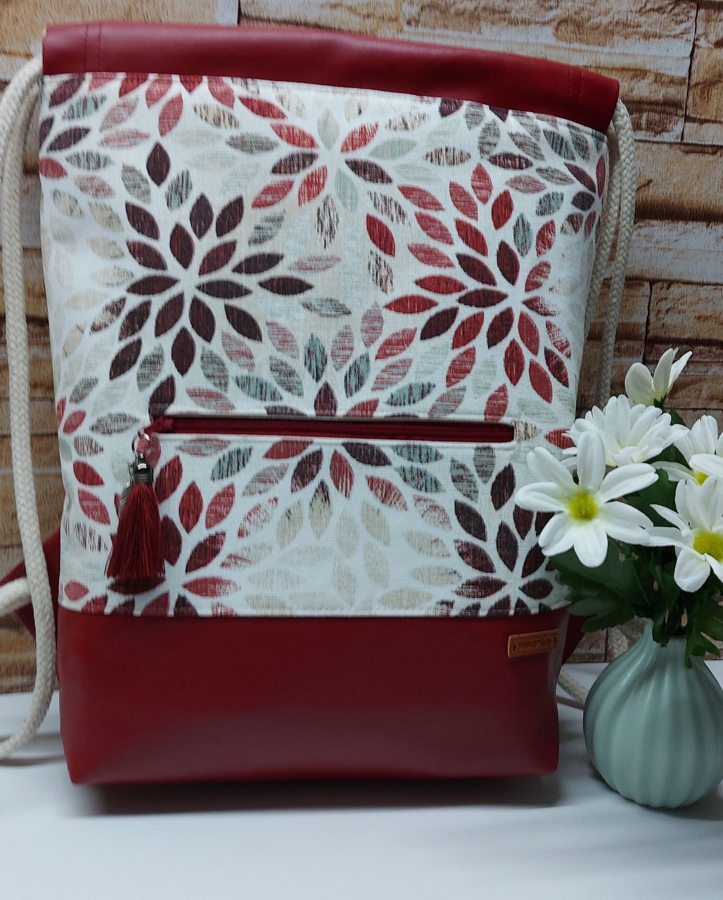 Turnbeutel, Damenrucksack - Blumenmandala - dunkelrot
