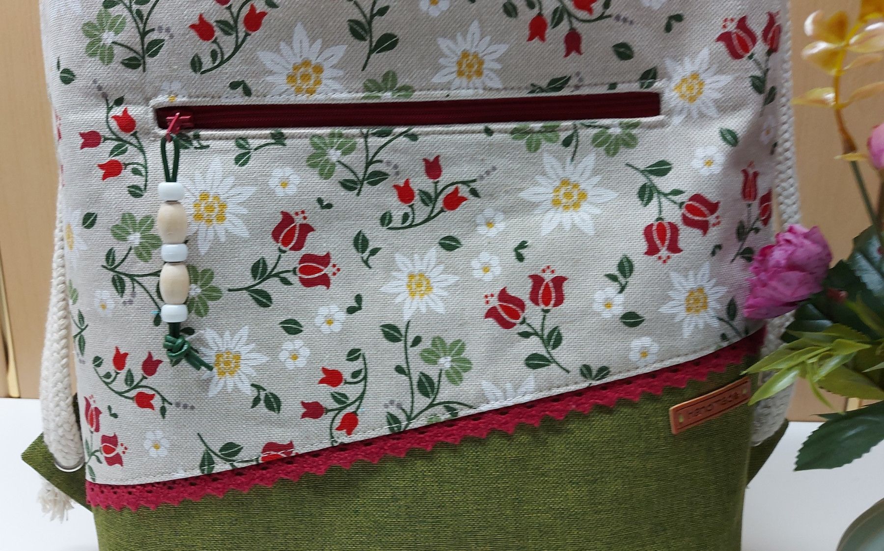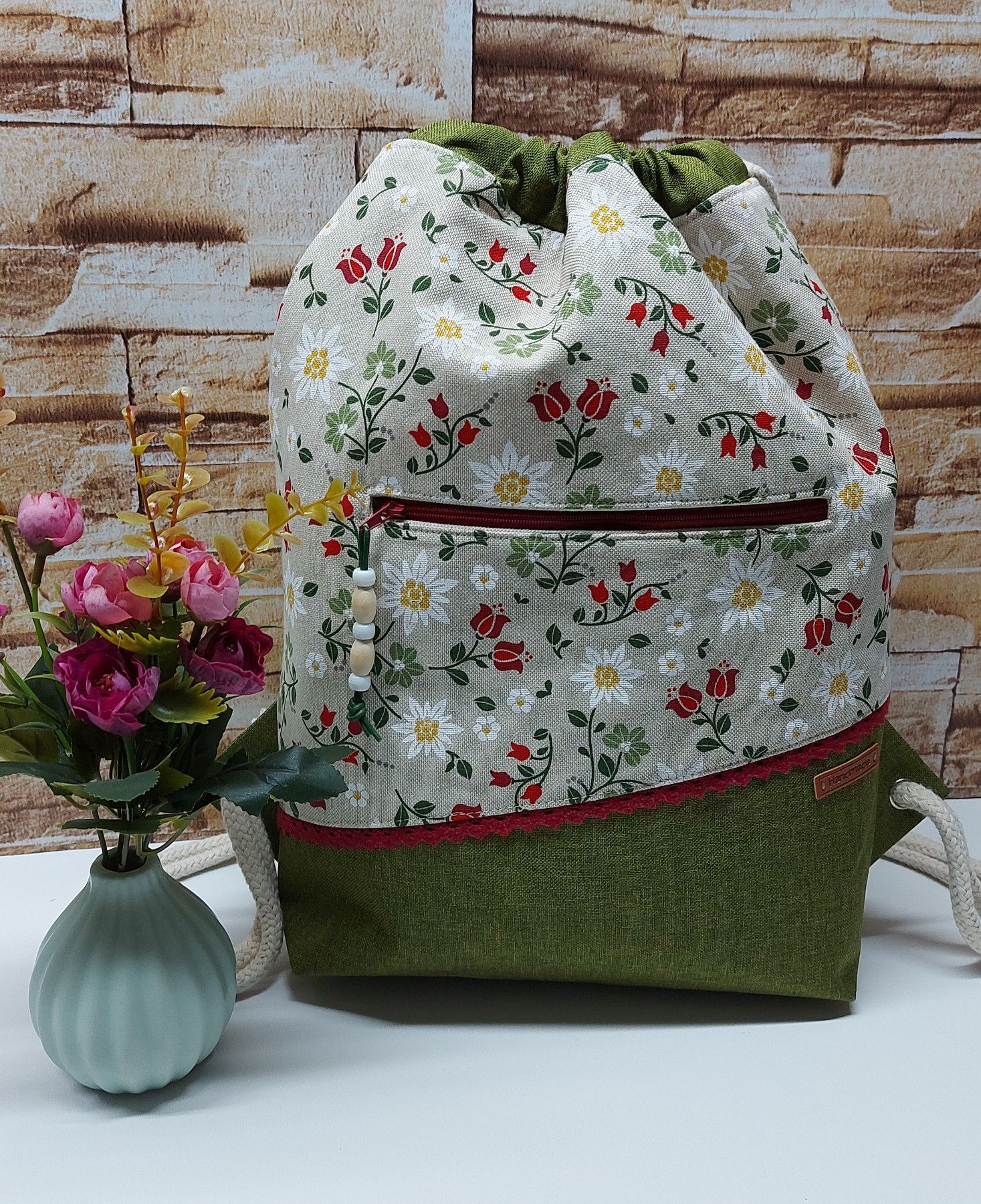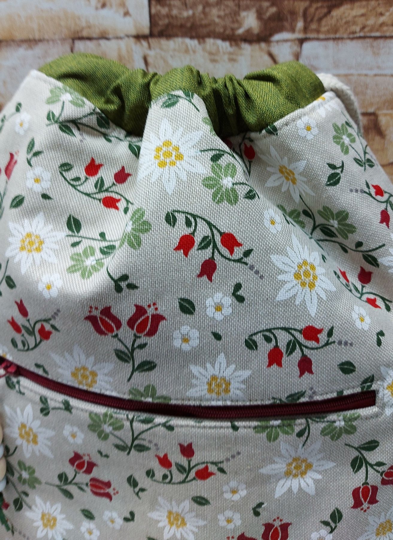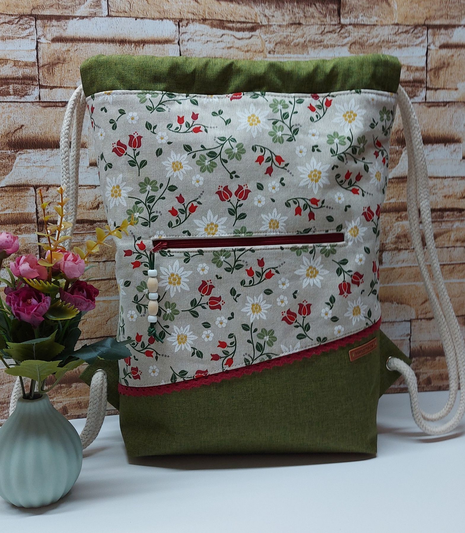 Turnbeutel, Damenrucksack - Landhaus - natur/grün
