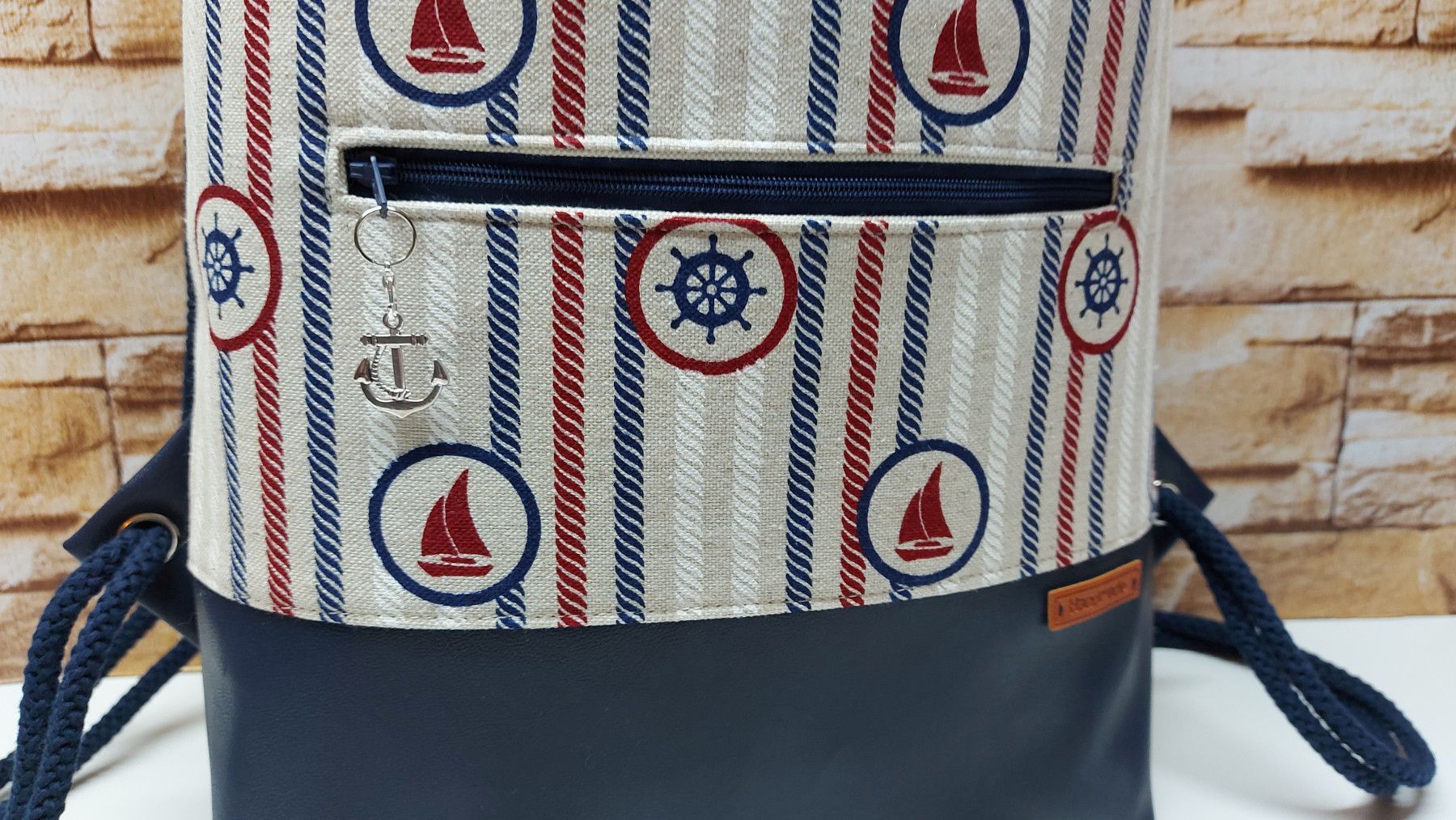Turnbeutel, Damenrucksack - maritimes Flair - Canvas - blau