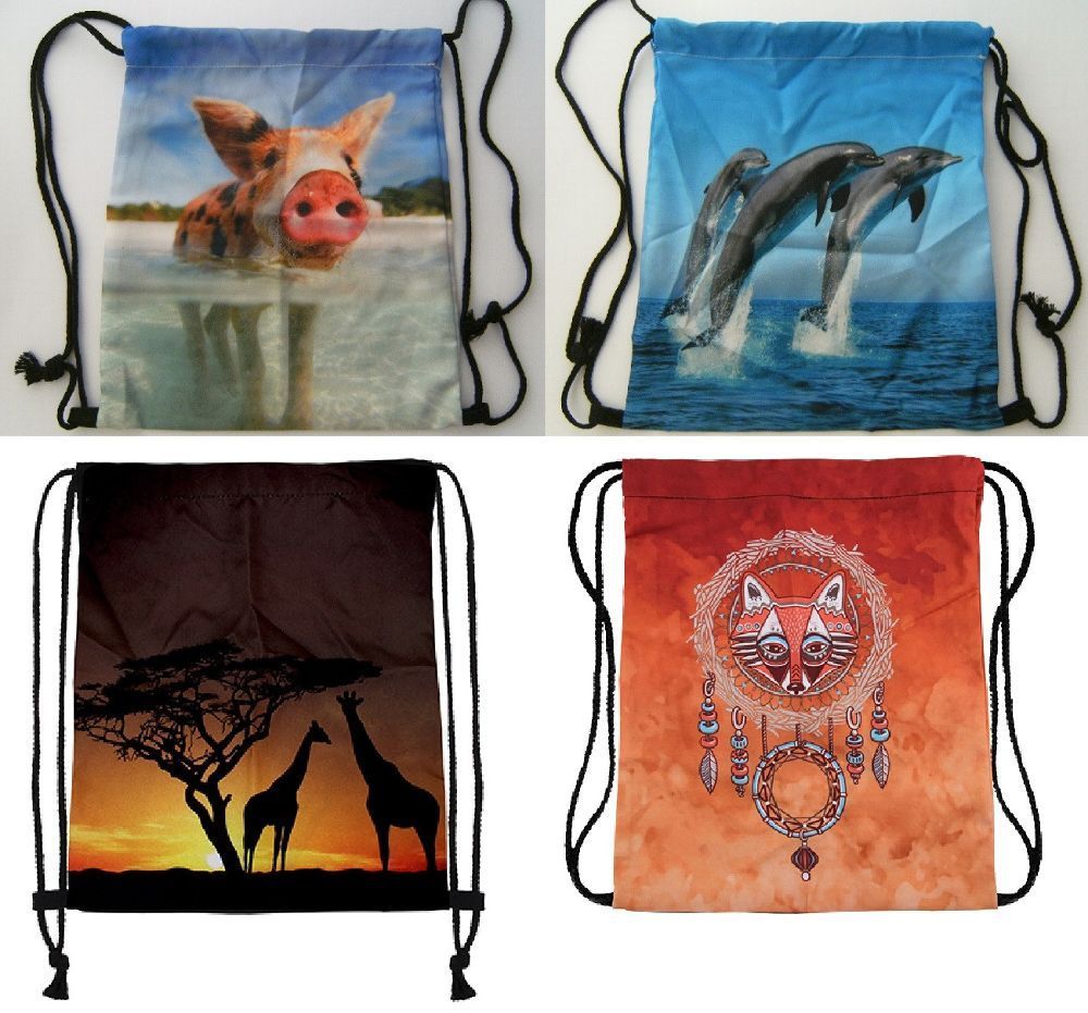 Turnbeutel Tiere Schwein Delfin Giraffe Rucksack Tasche Sportbeutel Schultertasche