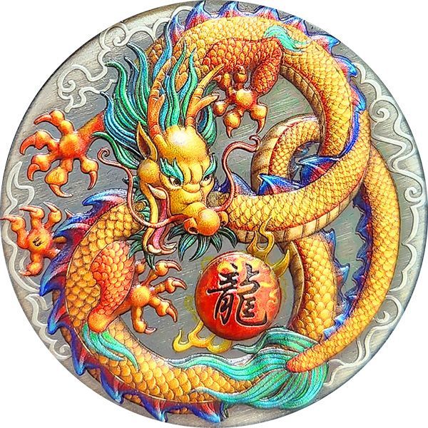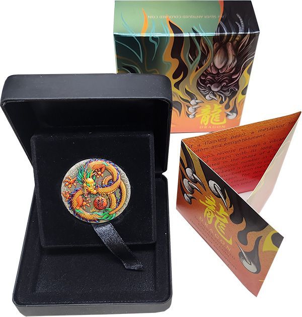 Tuvalu 2022 - Drache - 2 Oz coloriert und patiniert*