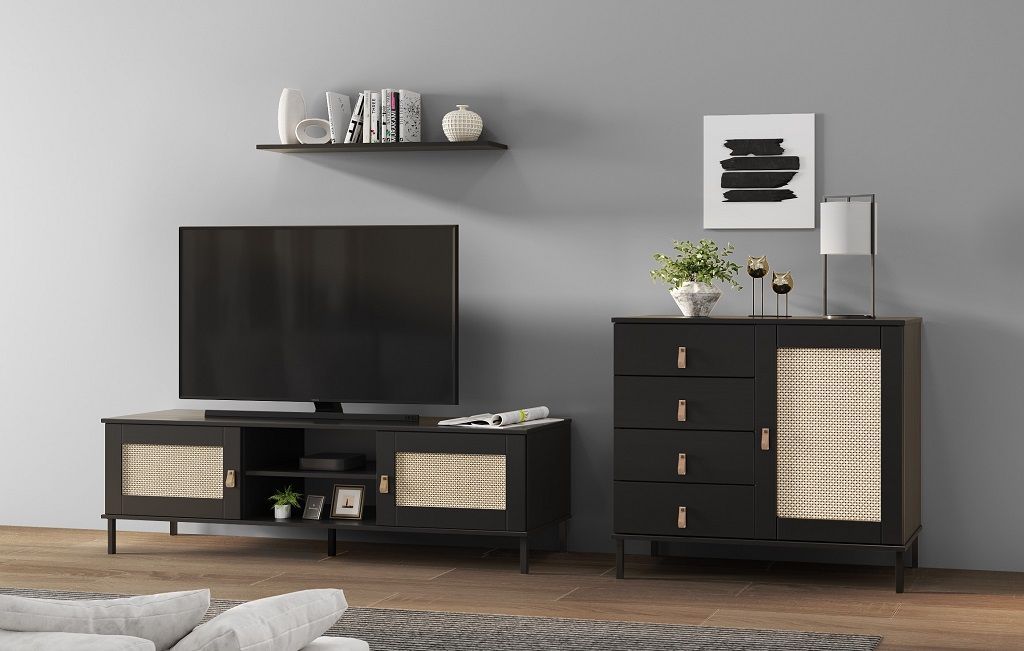 TV Board 158x47cm 'Seattle' Kiefer massiv schwarz