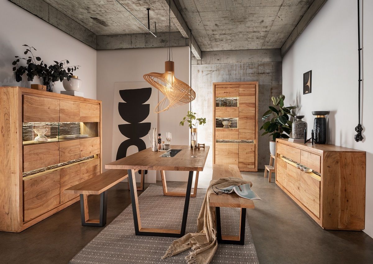 TV Board inkl. Beleuchtung 163x63cm "Trondheim" Akazie massiv