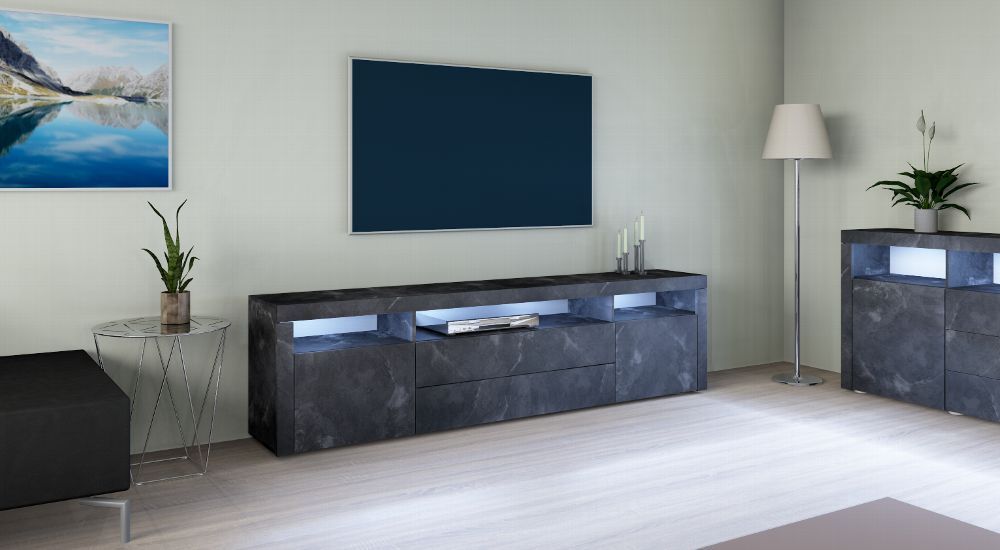 TV Board Lowboard Möbel Schrank Unterschrank Weiß Hochglanz Santa Fé 166cm