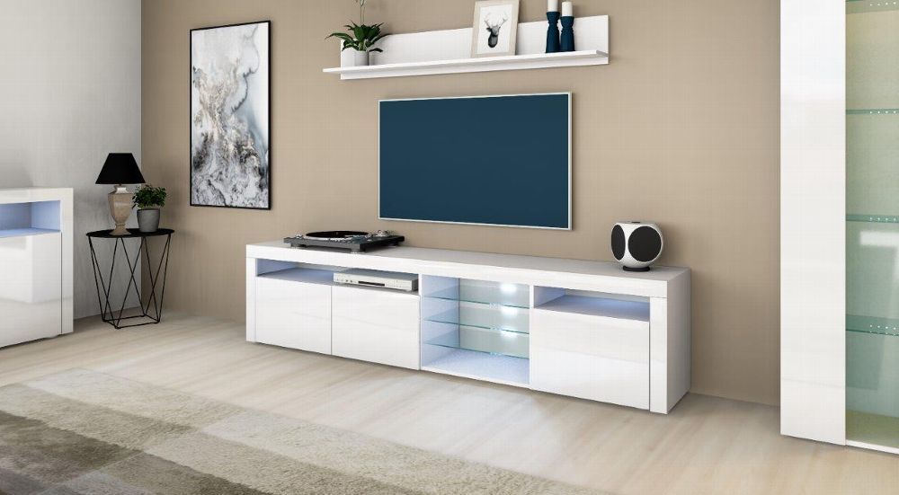 TV Board Lowboard Möbel Schrank Unterschrank Weiß Hochglanz Santa Fé 200cm