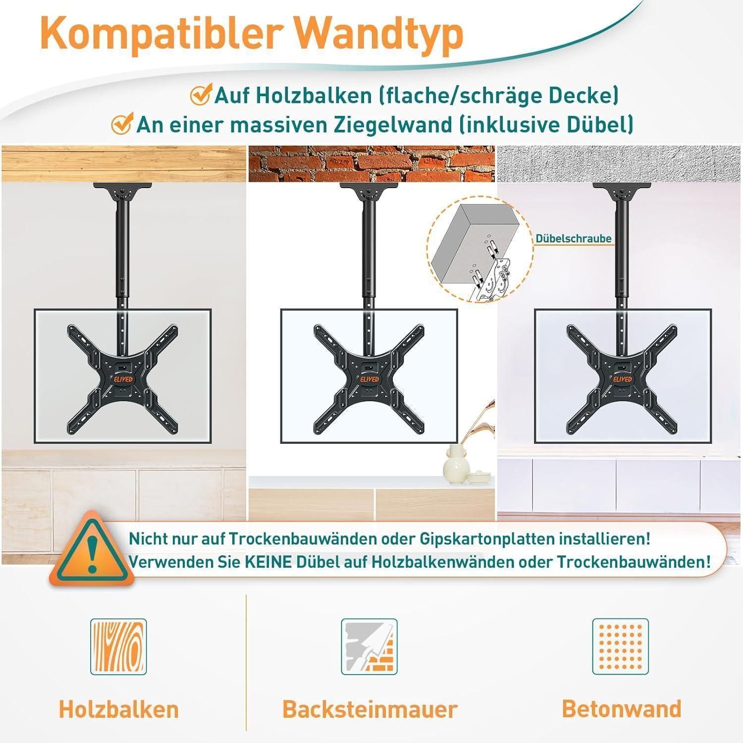 TV Deckenhalterung für 24-65 Zoll Flach Curved Fernseher bis 45KG VESA 400x400mm