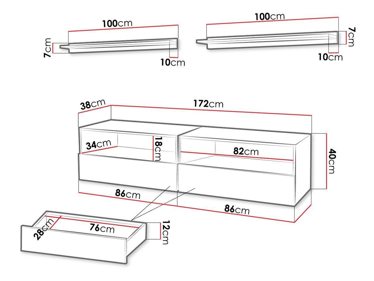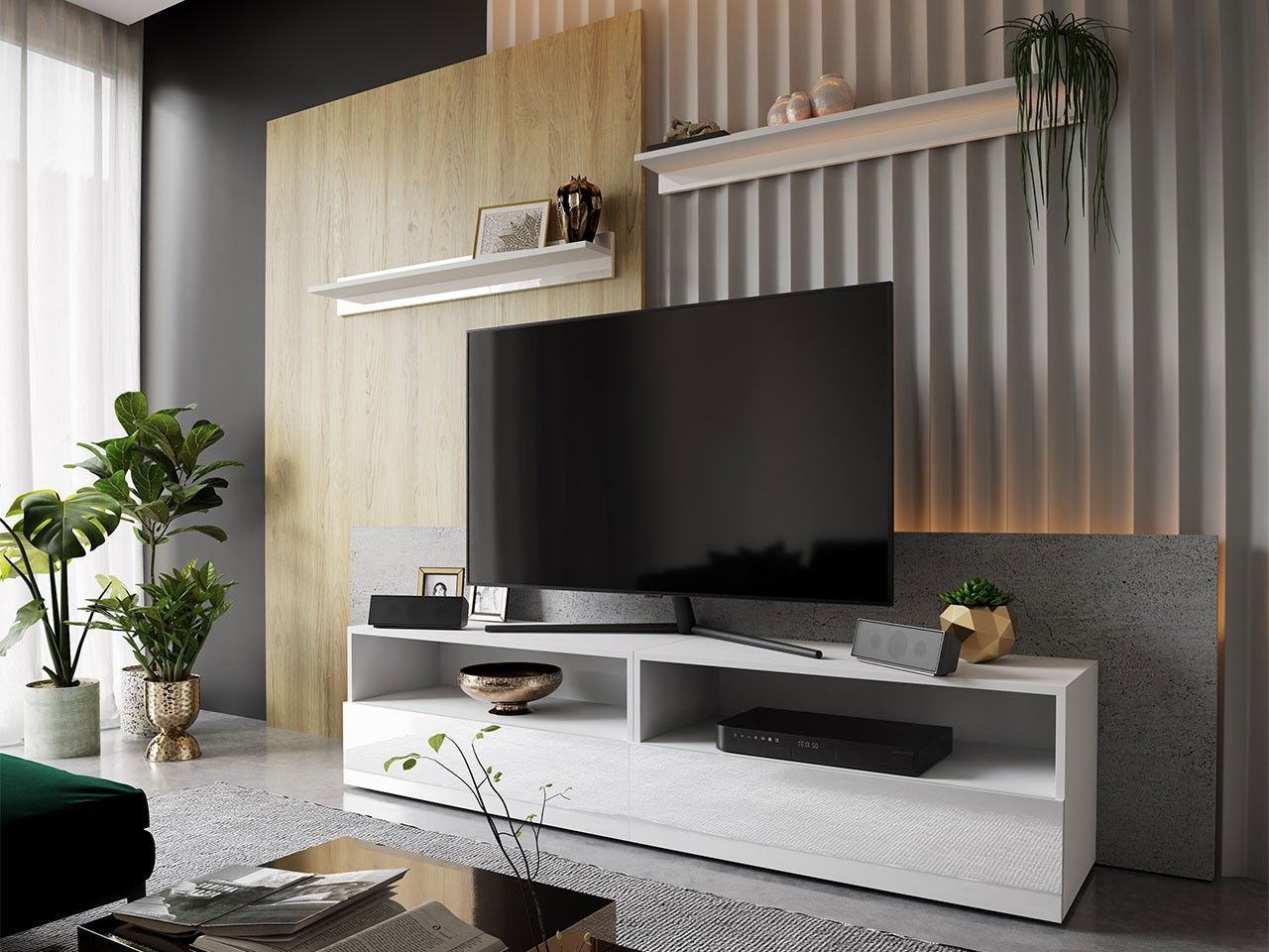 TV-Lowboard Boxing XXIII mit zwei Wandregale Modern Wohnwand Wohnzimmer-Set M24