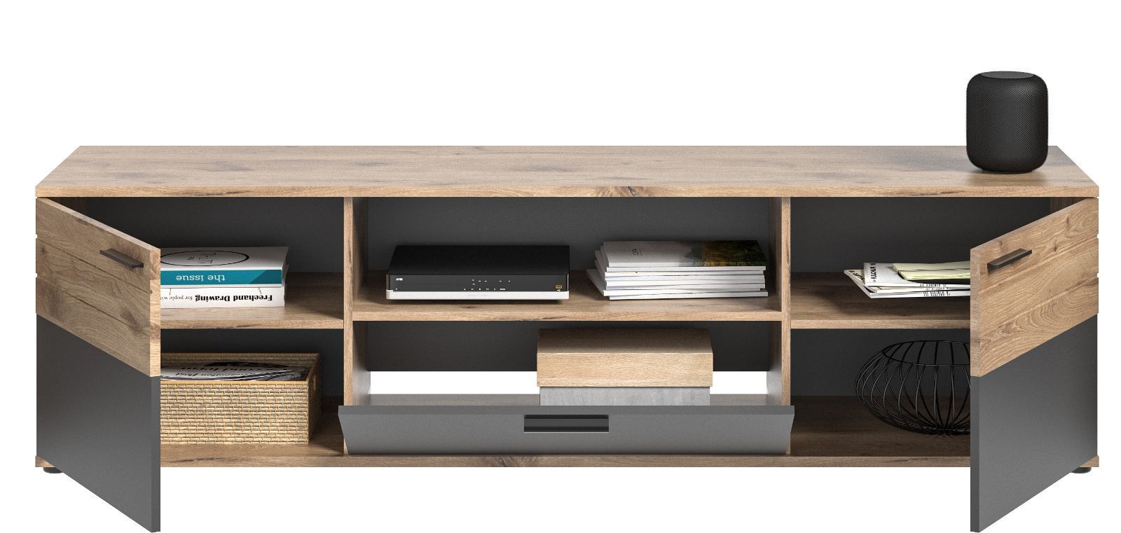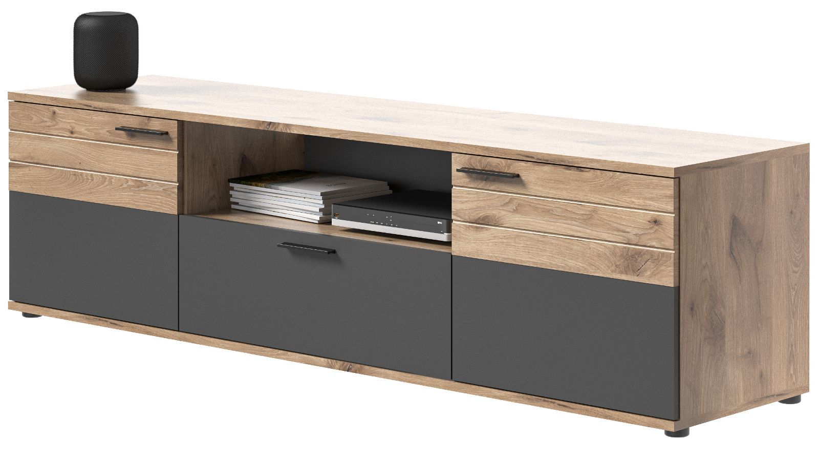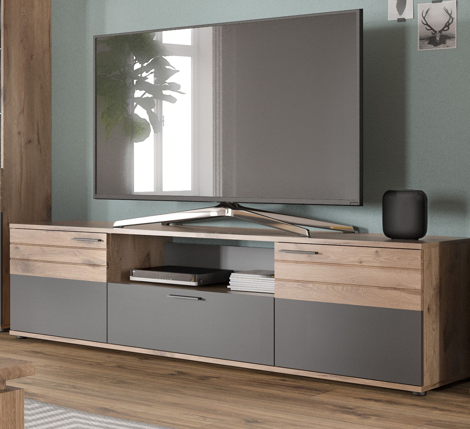 TV Lowboard Fernseher Unterschrank Board Eiche grau Soft-Close 190 cm LED Tomaso