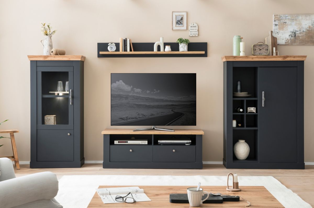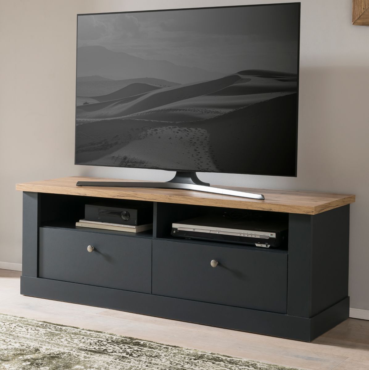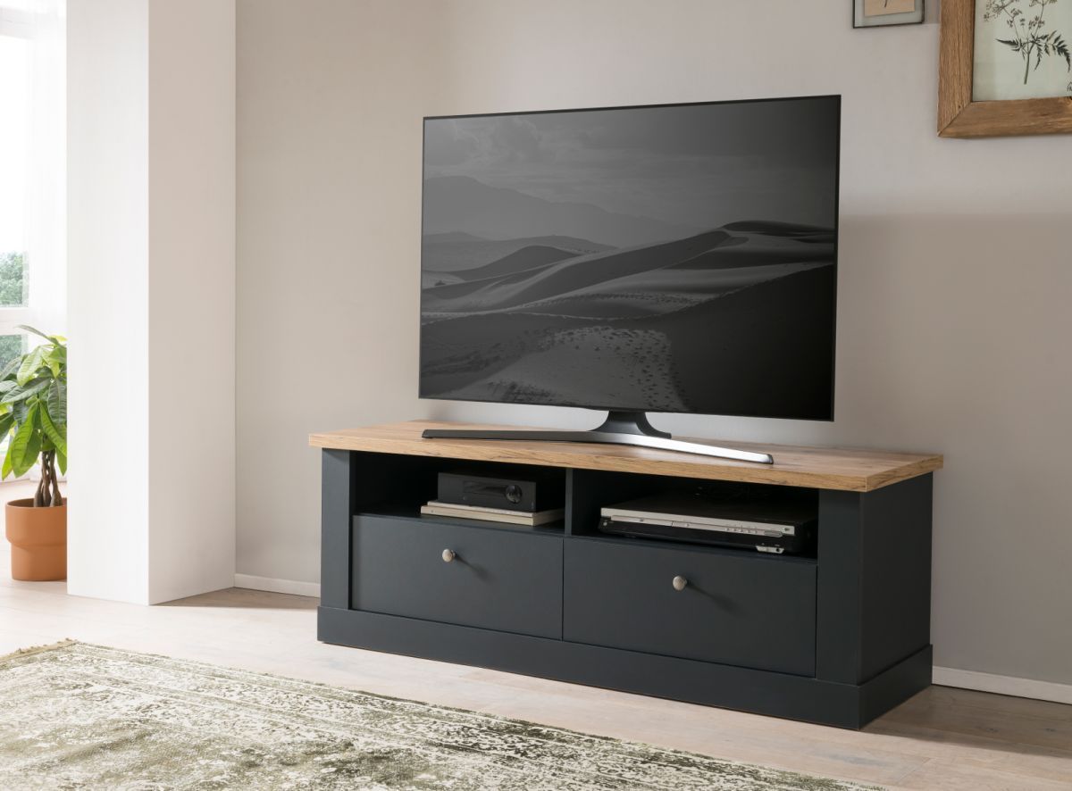 TV Lowboard Fernseher Unterschrank grau Eiche Landhaus 135 cm Soft-Close Ribera