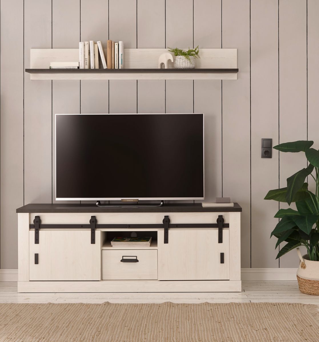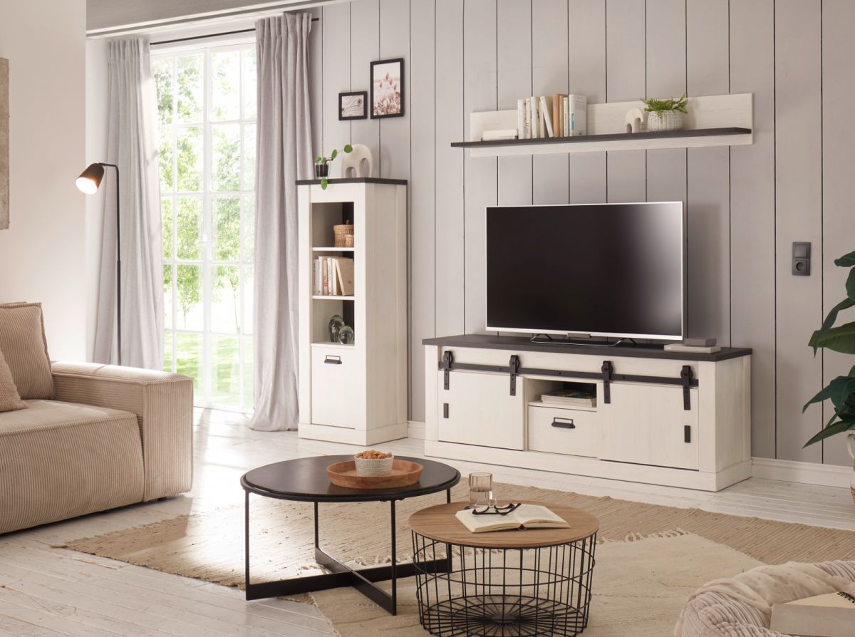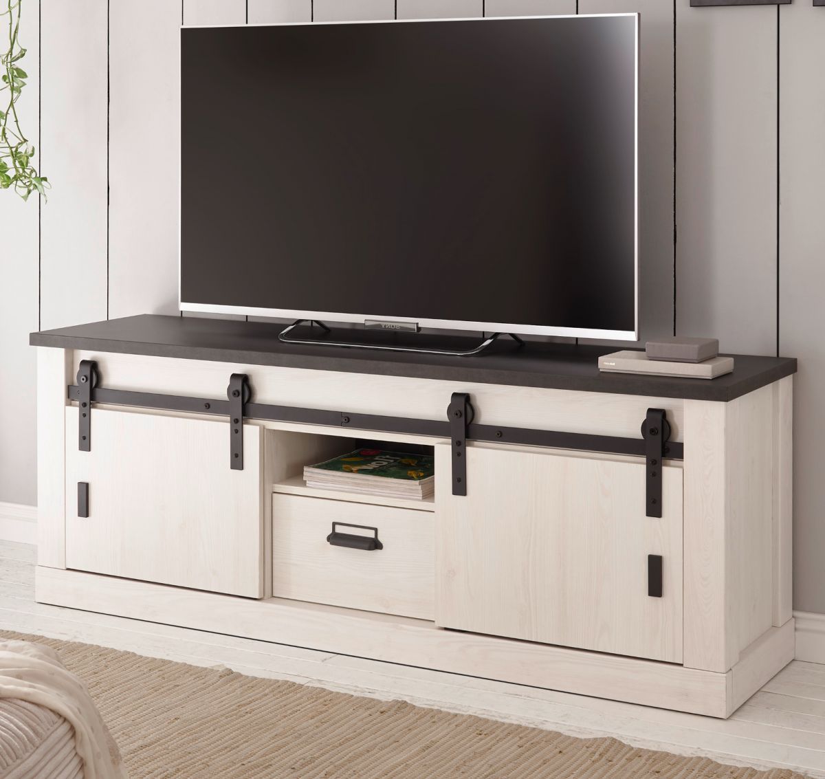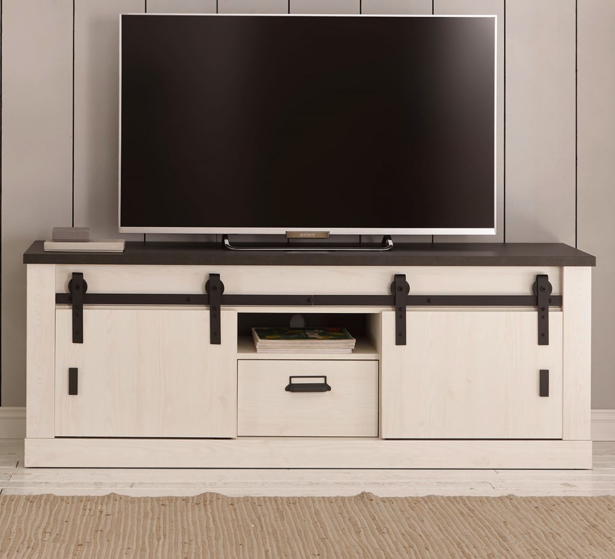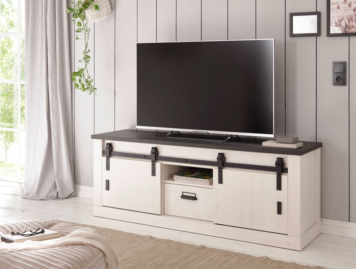 TV Lowboard Fernseher Unterschrank weiß Pinie Landhaus 160 cm Soft-Close Stove