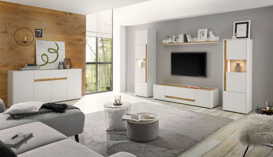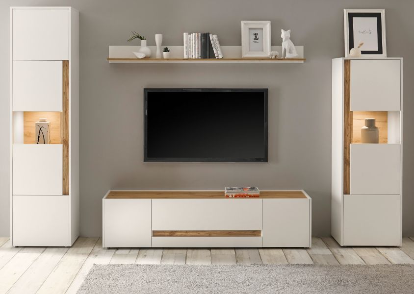 TV-Lowboard Fernseher Unterschrank weiß und Eiche Wotan Unterteil 170 cm Center