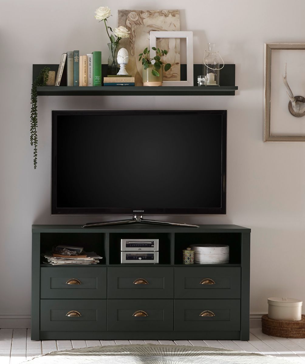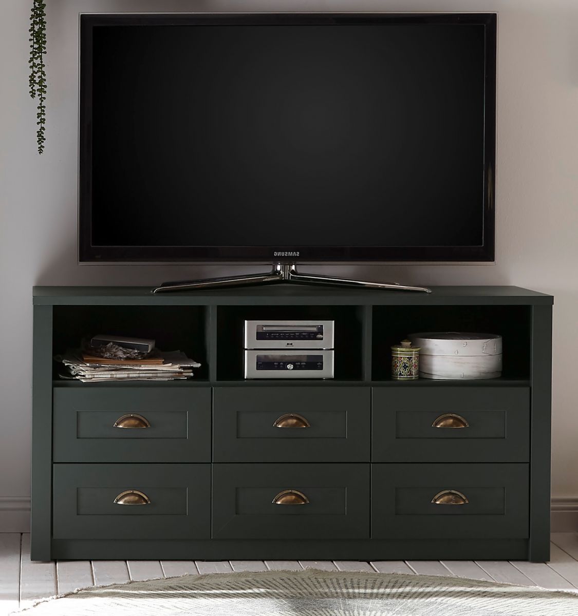 TV-Lowboard Fernsehtisch grün Landhaus TV Unterteil mit Komforthöhe 130x67 cm Forres