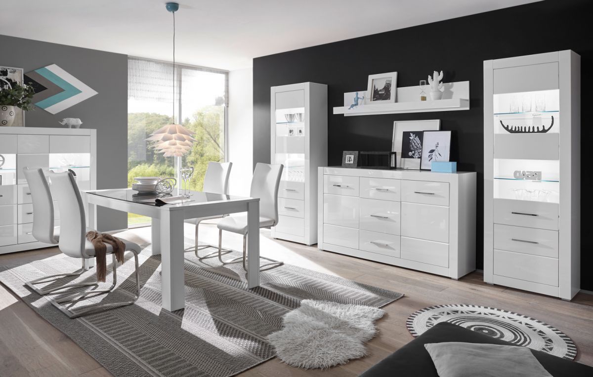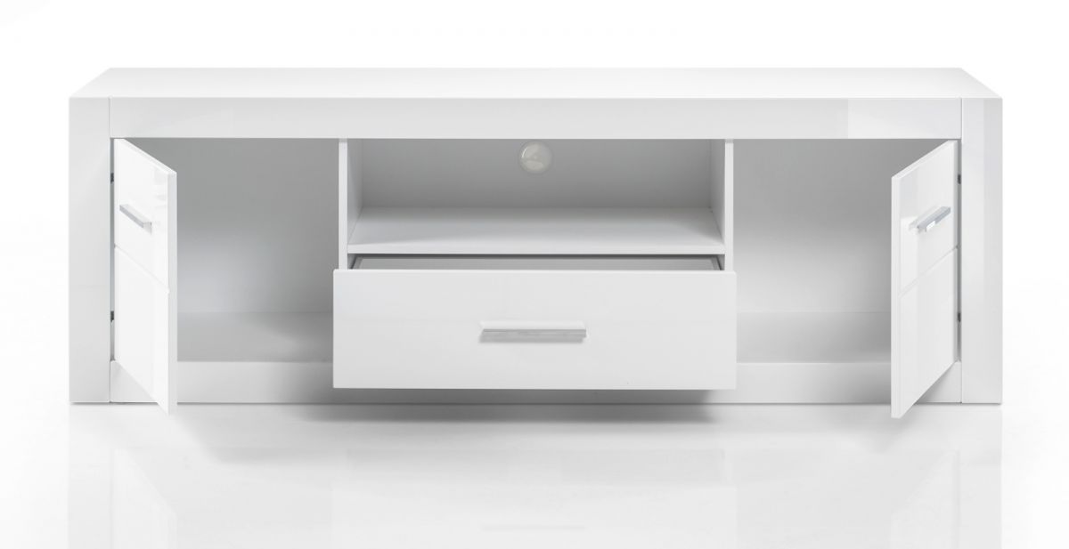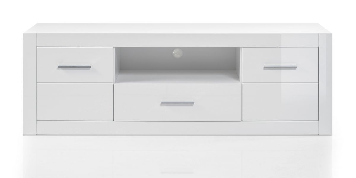 TV Lowboard Flat-TV Unterschrank in weiß Hochglanz auf Rollen, Breite 180 cm, Carrara