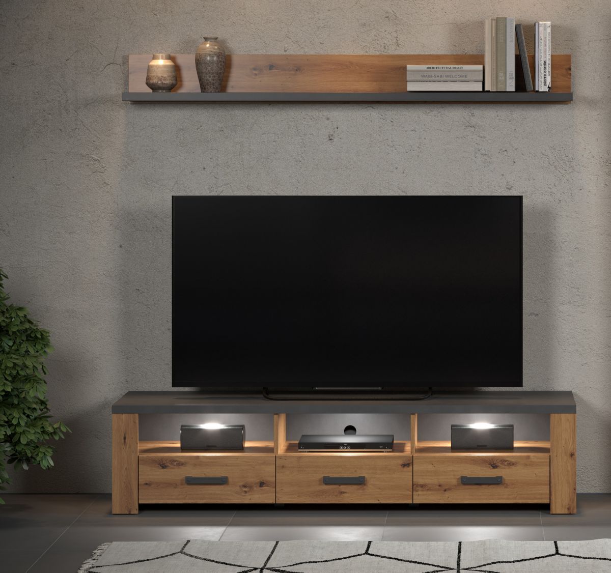 trendteam TV-Lowboard in Artisan Eiche grau Fernseher Unterschrank Flat TV Board Follow 180 cm