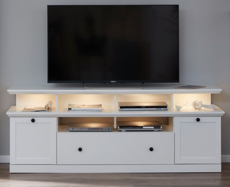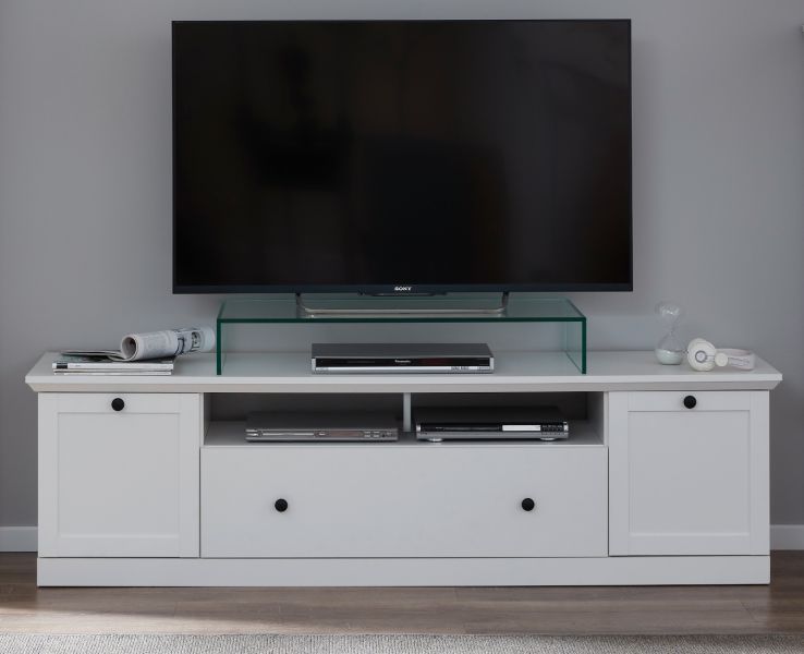 Trendteam TV-Lowboard in weiß Landhaus TV-Unterteil Fernsehtisch 177 cm Board Rack Baxter