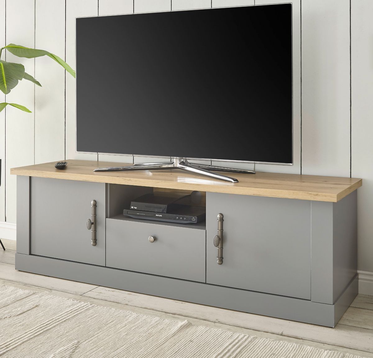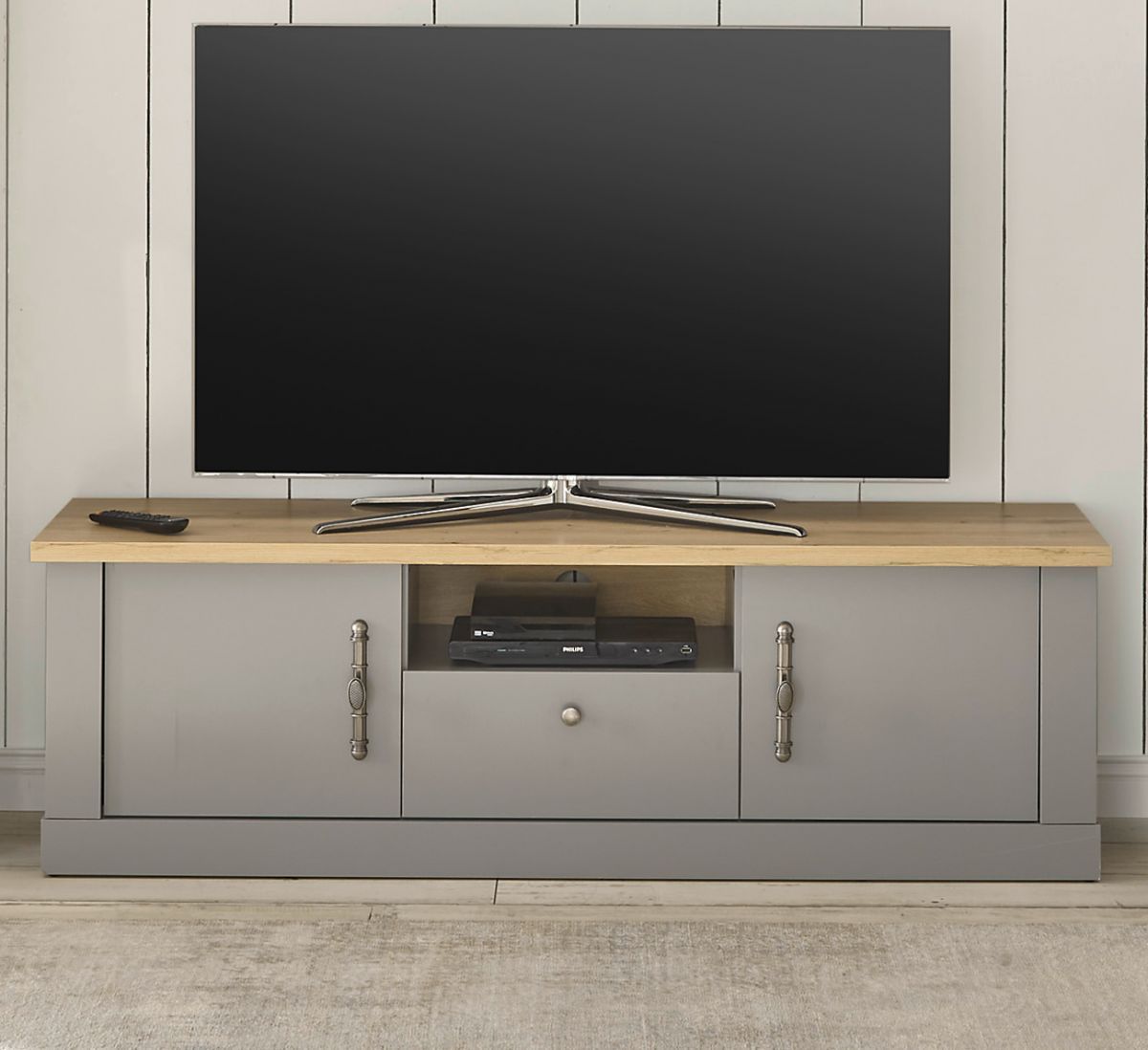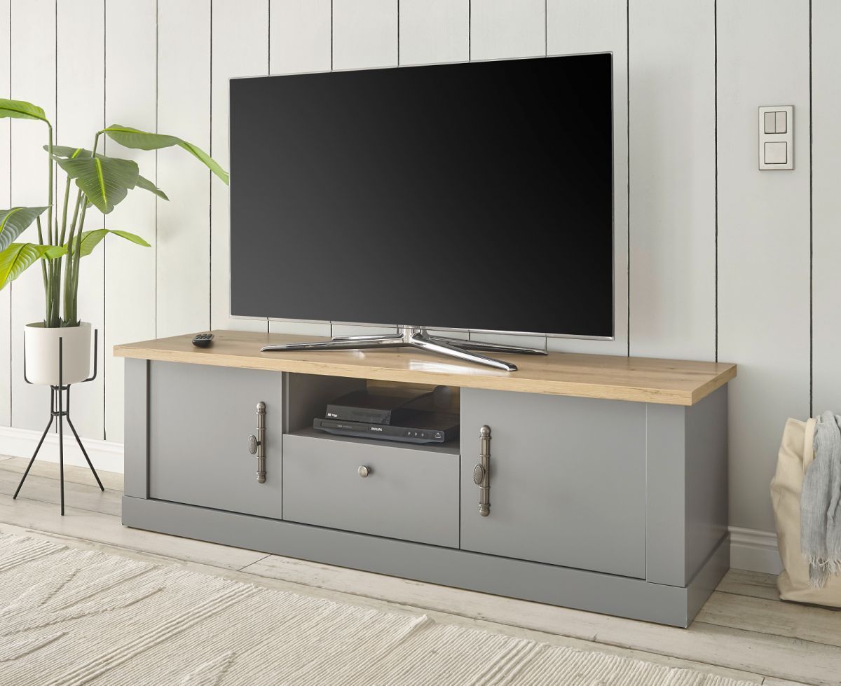 TV Lowboard Landhaus Fernseher Unterschrank grau Eiche Rideau 155 x 48 cm