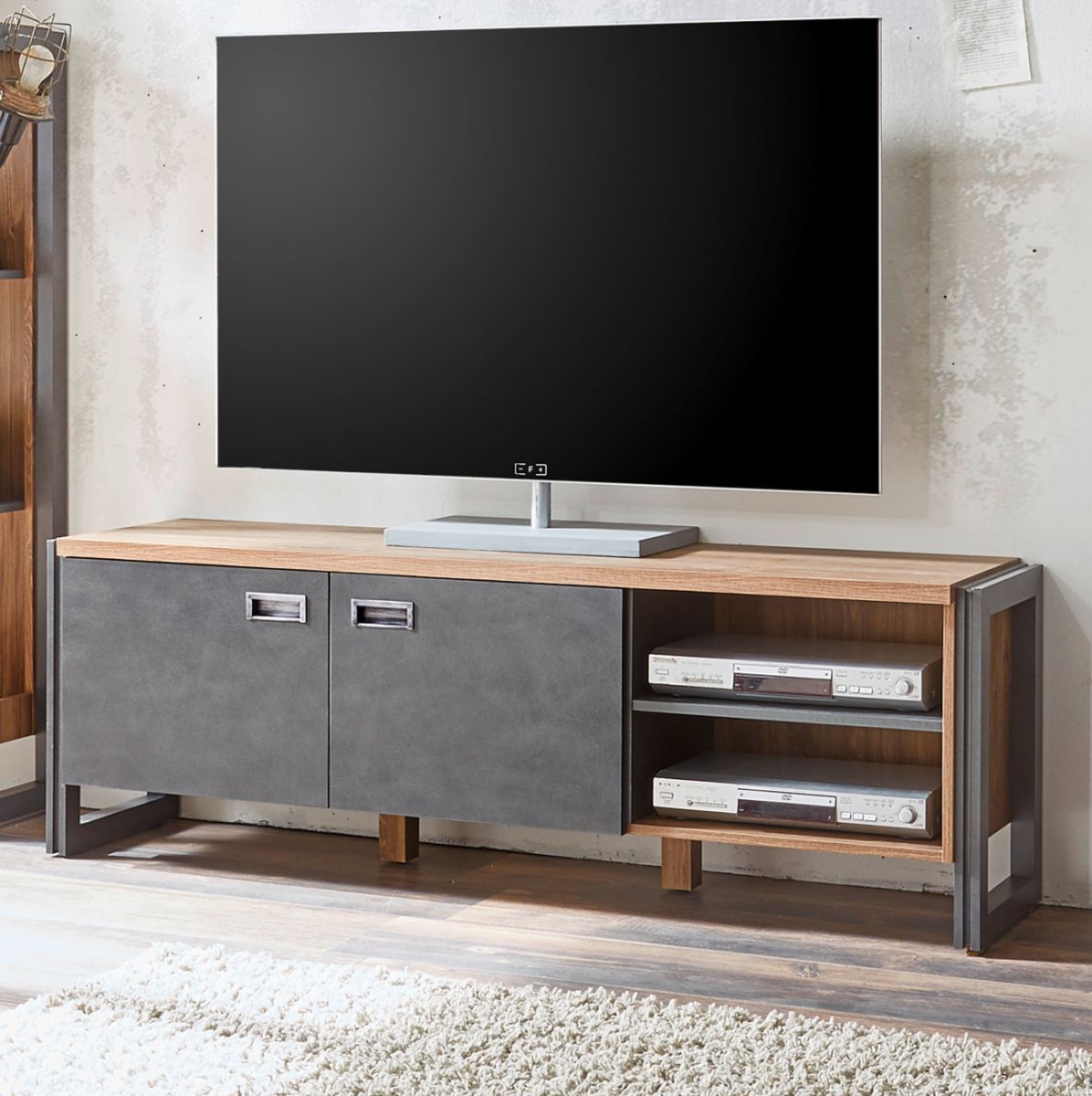 TV Lowboard Unterschrank Fernsehtisch Eiche und grau Board Auburn 156 cm