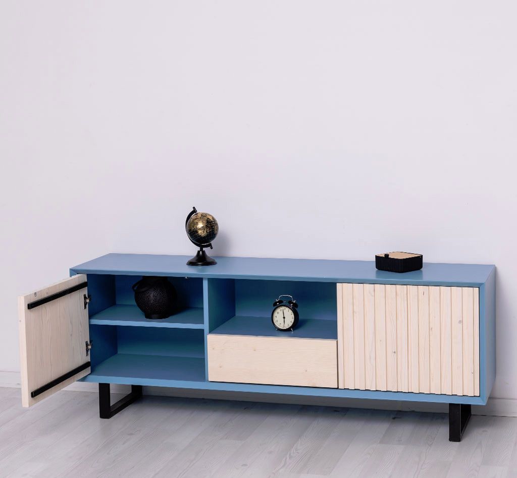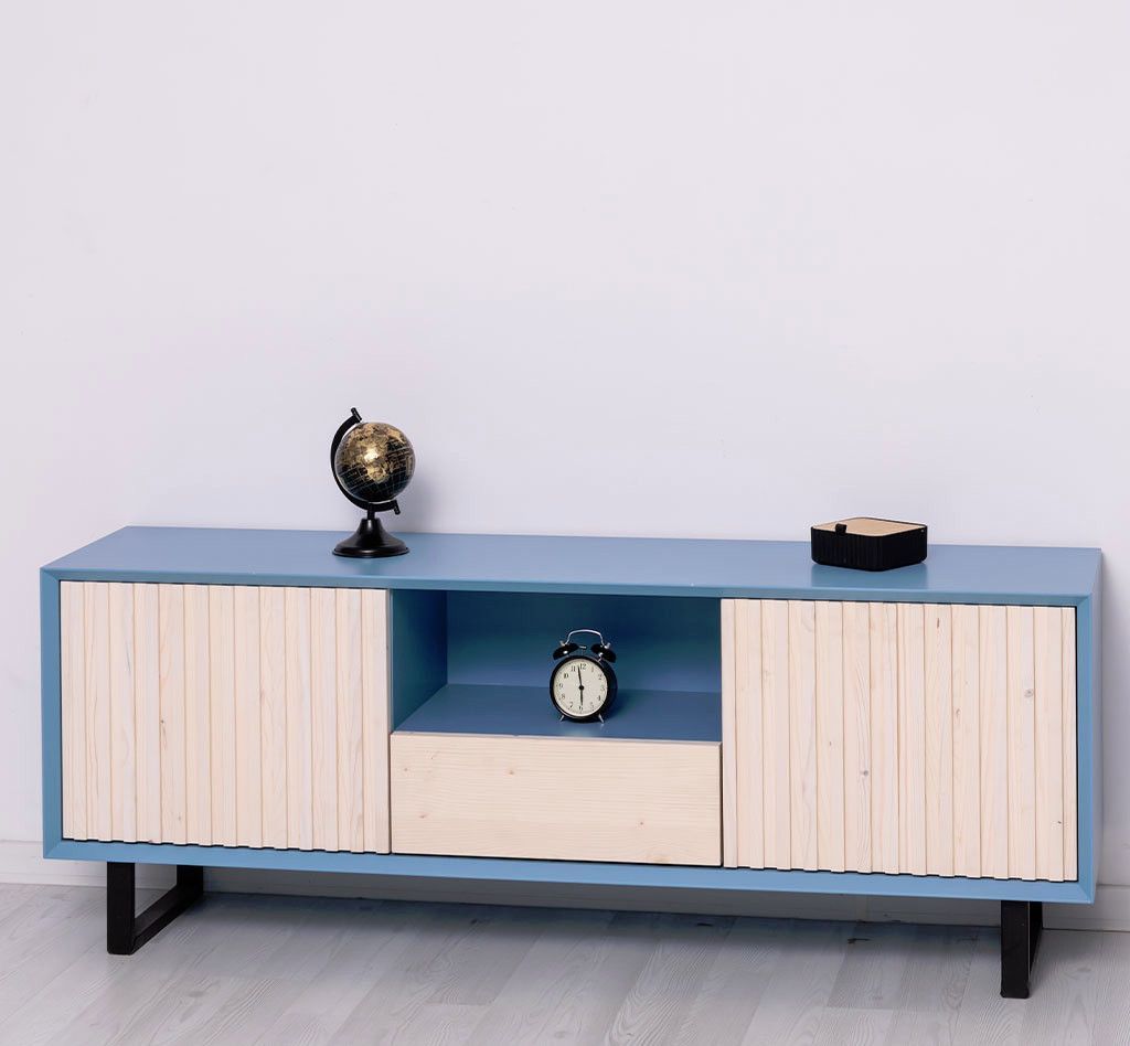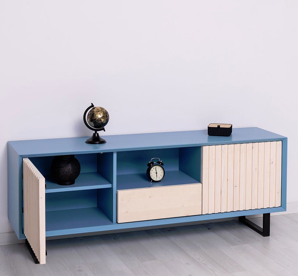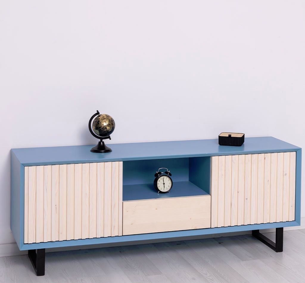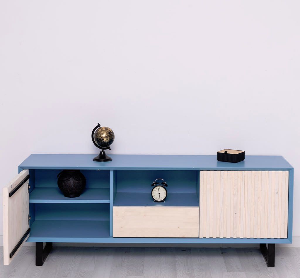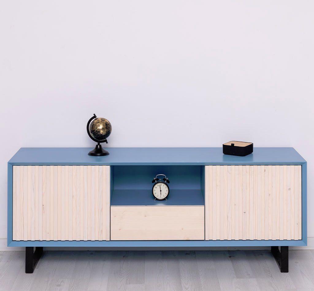 Tv-Möbel: Lowboard im Skandi Look himmelblau / weiß geölt