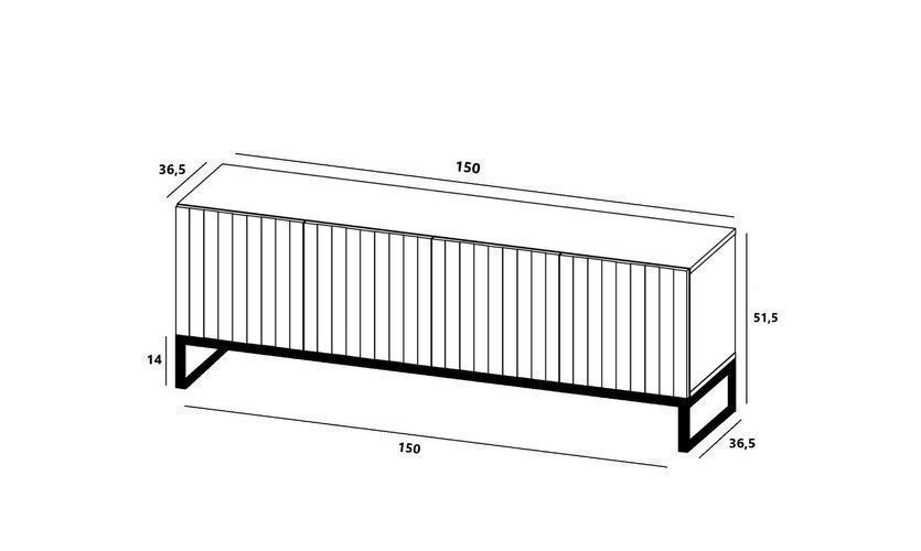 TV-Schrank Glamour TV-Lowboard RTV-Schrank Modern Fernsehschrank 150cm Weiß Matt