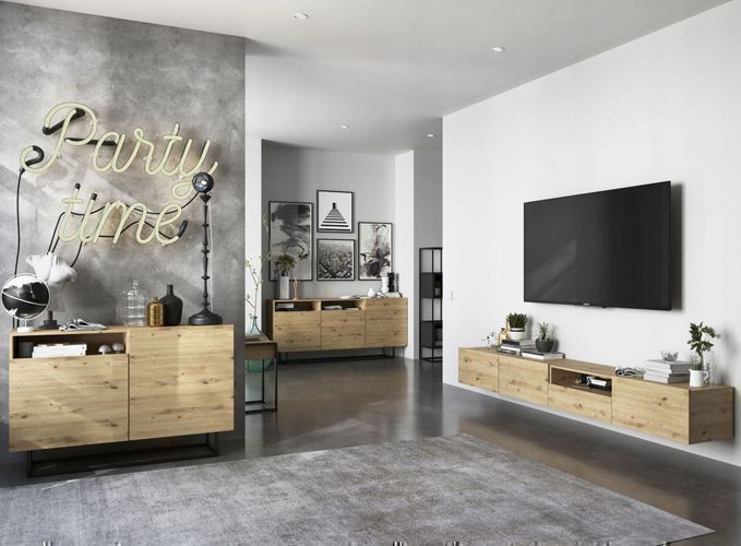 TV Schrank hängend TV Kommode Matt TV Lowboard Loft Industriell Eiche Artisan Matt