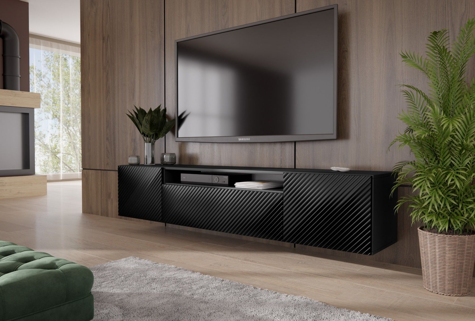 TV-Schrank Kaja Fernsehschrank TV-Lowboard 200 cm gefräste Fronten