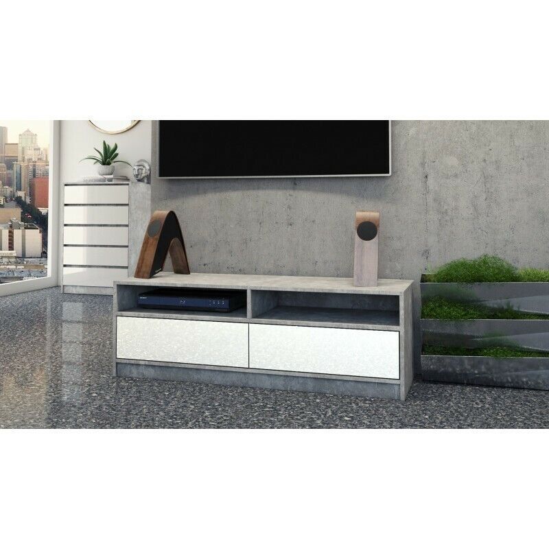 TV Schrank Lowboard Fernseher Schrank Fernsehtisch BETON-WEISS hochglanz