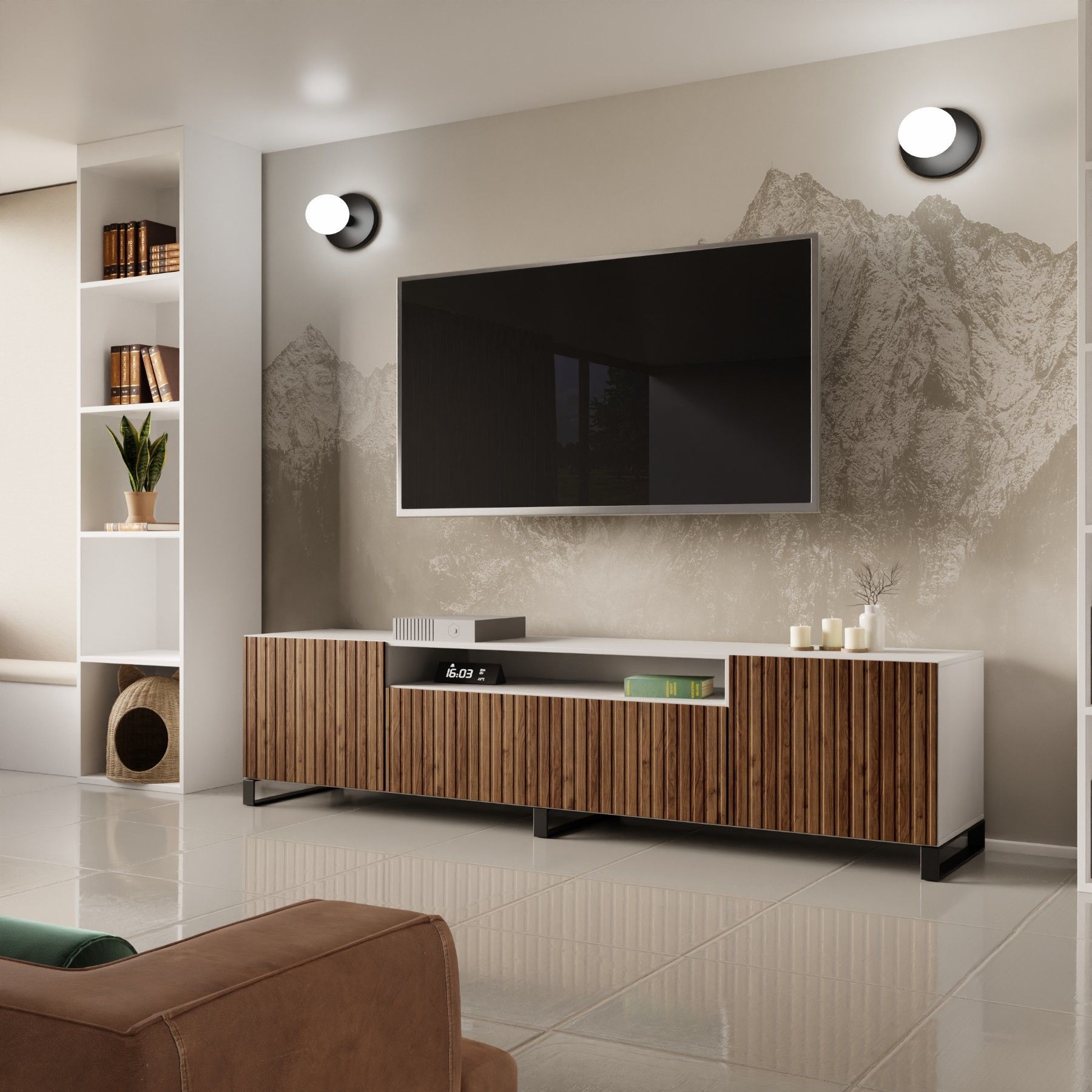 TV-Schrank Mio Fernsehschrank TV-Lowboard 200 cm vertikal gefräste Fronten