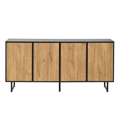 • Wohnzimmer Sideboard 160 cm 4 Türen Naturholz Schwarz Schrank