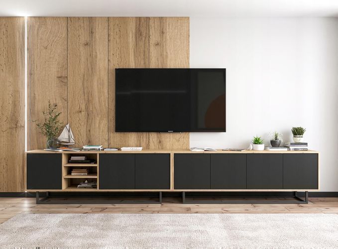 TV-Schrank RTV Fernsehschrank Modern TV-Lowboard Wotan Eiche Matt - Schwarz Matt