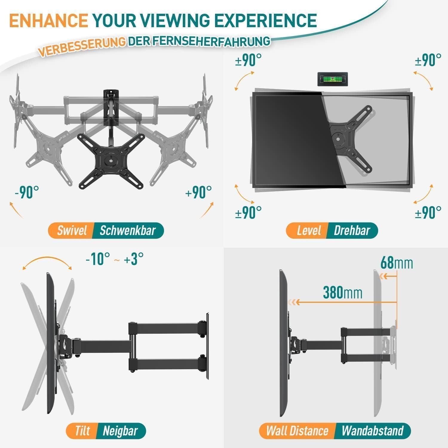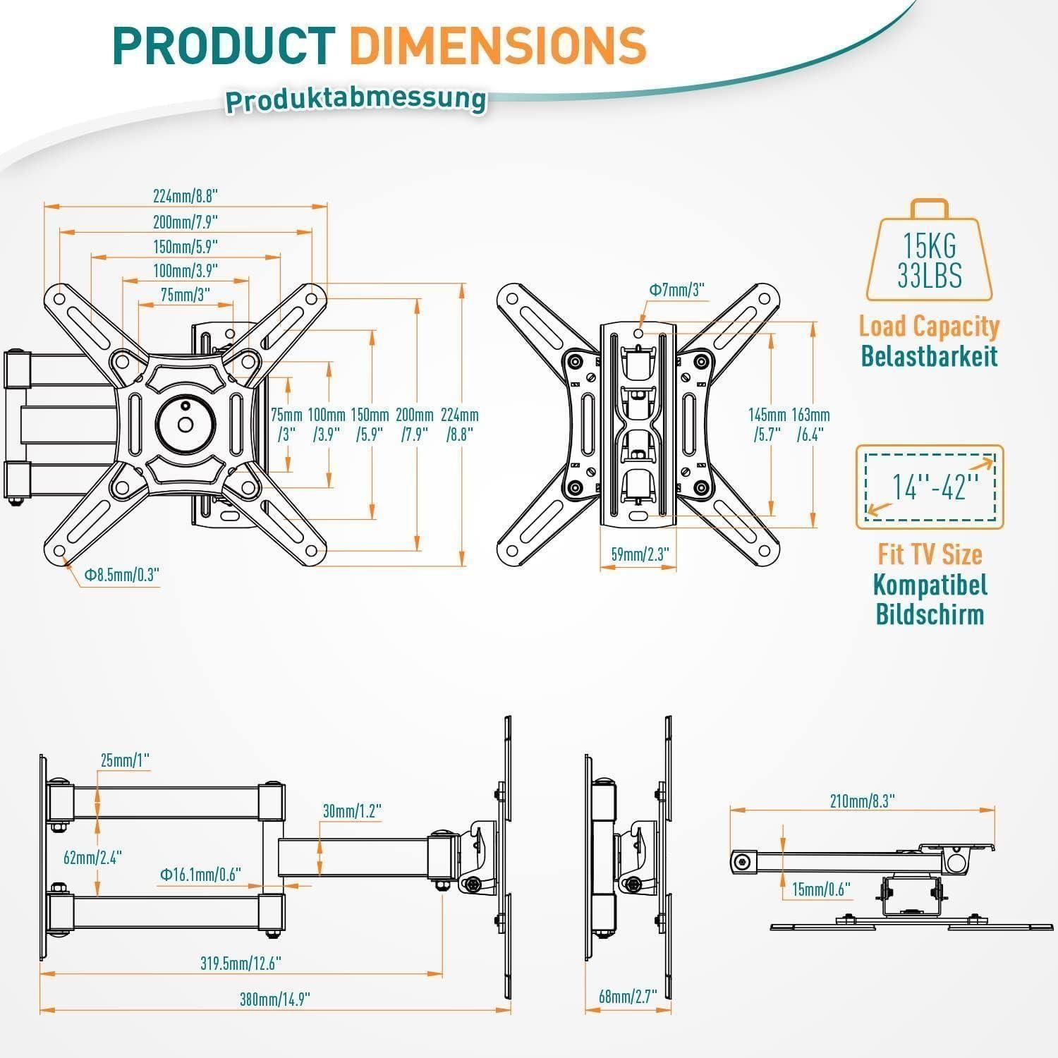 TV Wandhalterung Schwenkbar Neigbar Ausziehbar 14-42 Zoll bis 15kg VESA