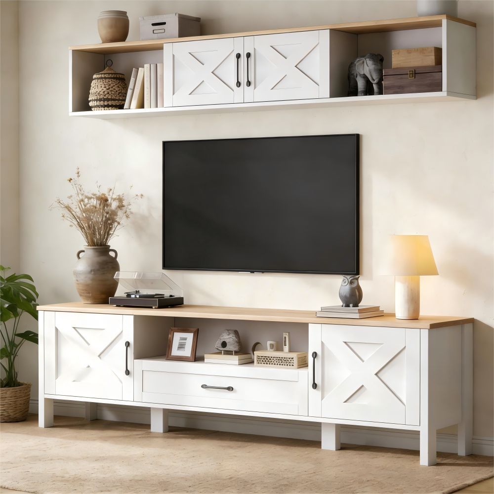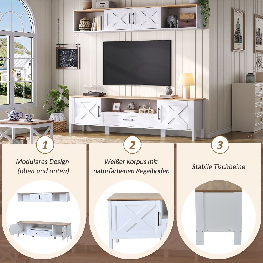 TV Wohnwand Set 180 cm Mediawand TV Schrank Vitrine Wohnzimmermöbel