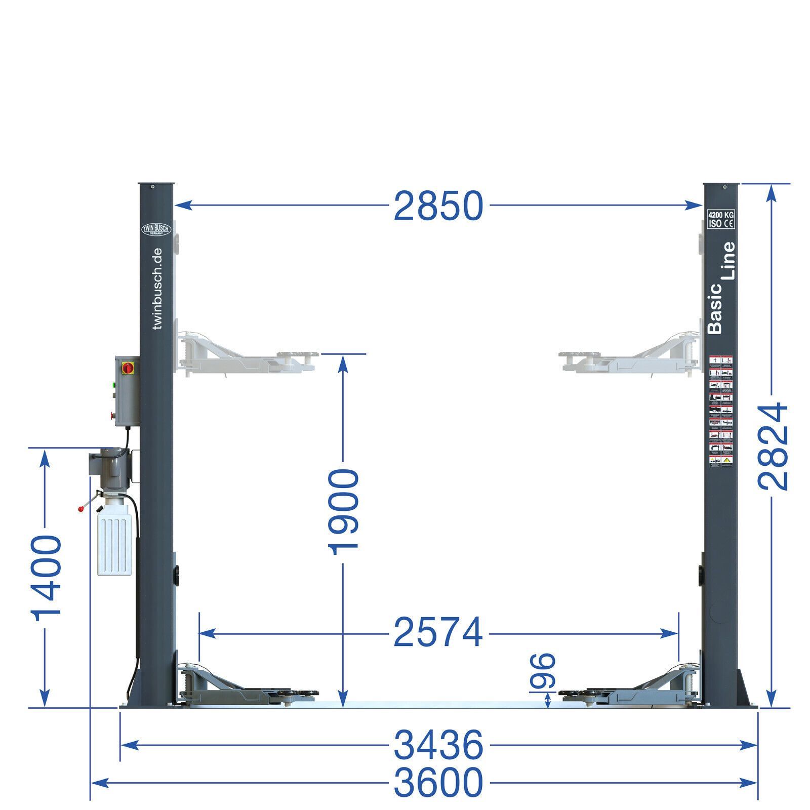 Twin Busch ® NEUE 2 Säulen Kfz Hebebühne 4200 kg GREY-Line - inkl. Öl u. Versand (DE)