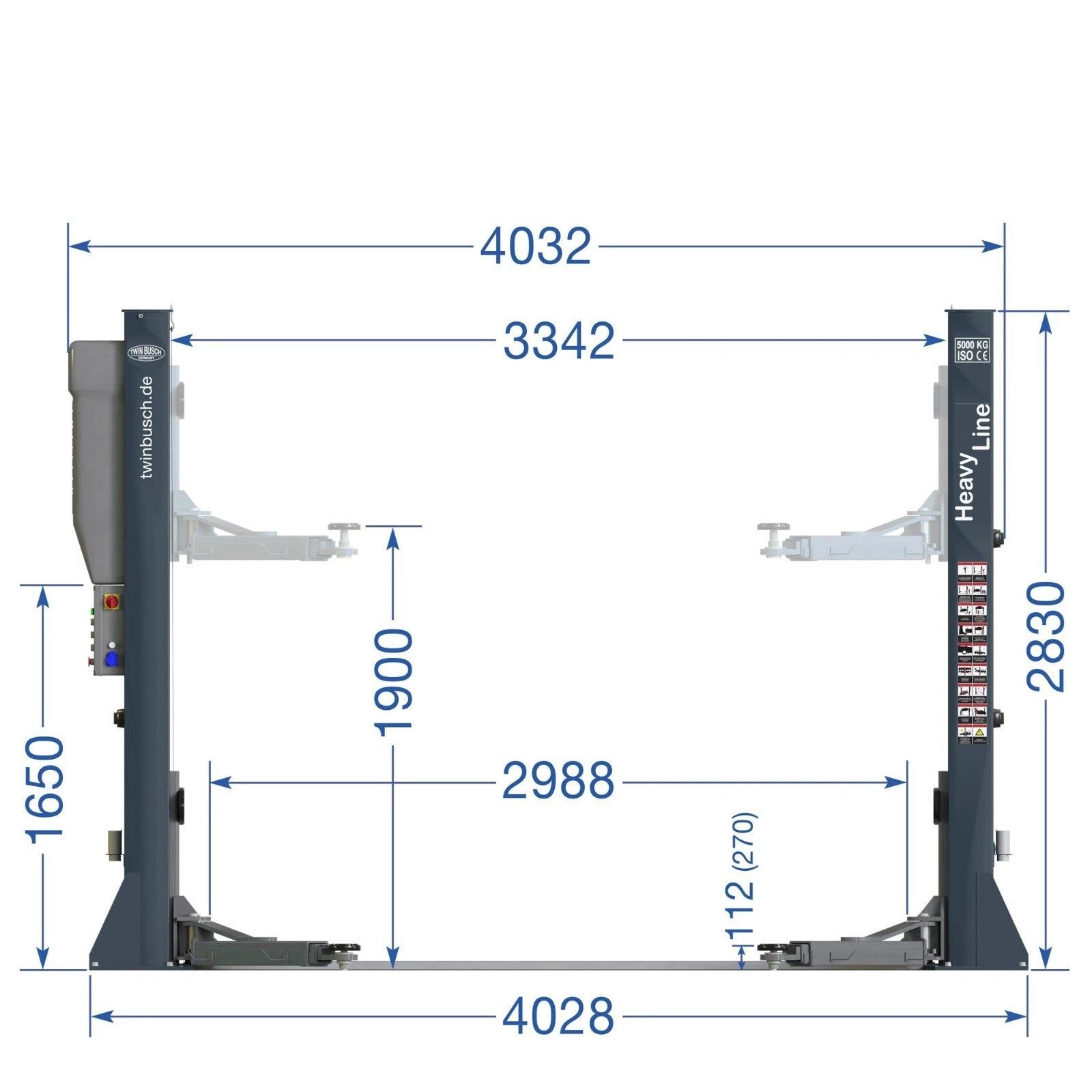 Twin Busch ® NEUE 2 Säulen Kfz Hebebühne 5000kg Heavy Line - TW250-G