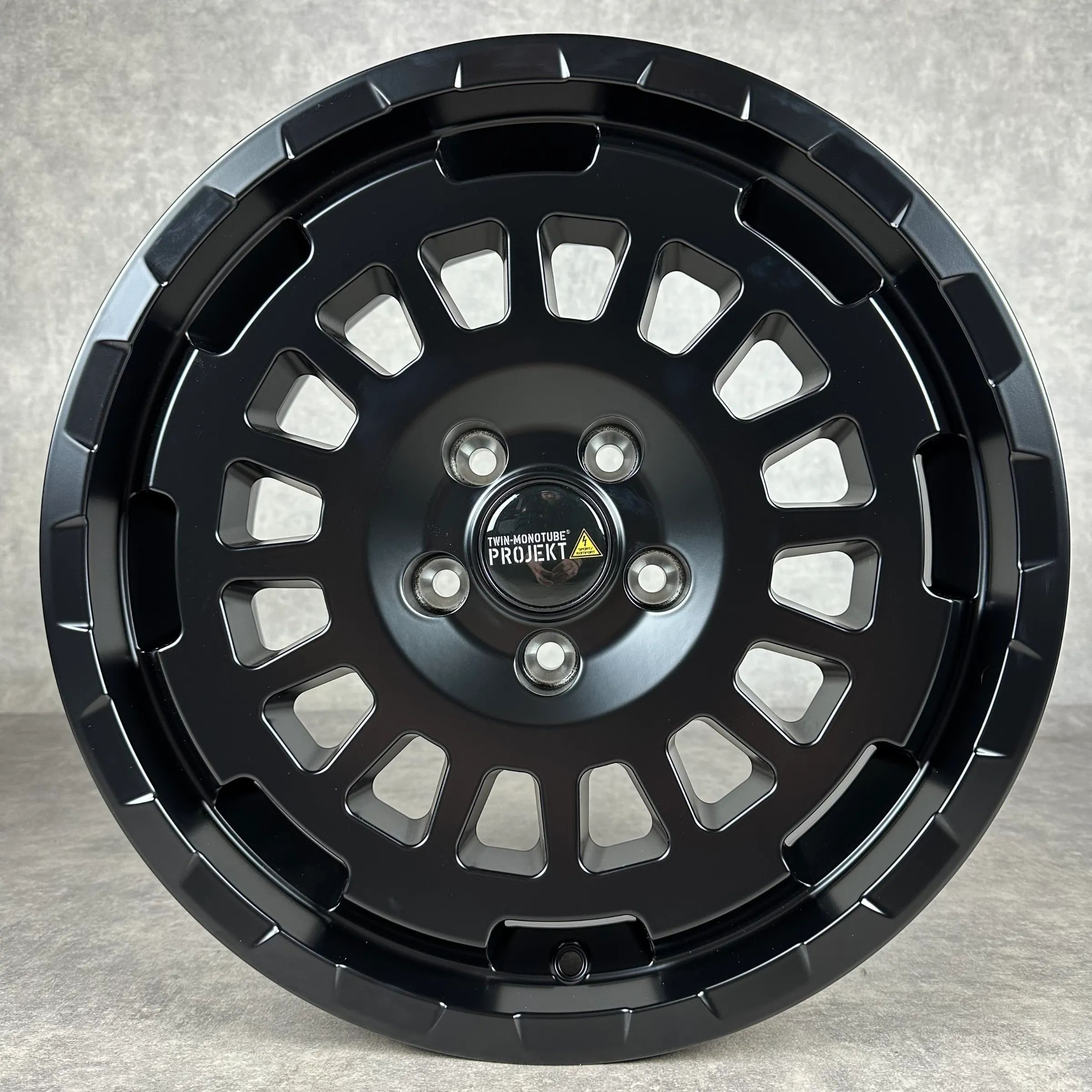 4x Original TWIN MONOTUBE 18 TWIN-MONOTUBE-PROJEKT-AT18 Felgen schwarz matt Original Lack Dimension: 8,5Jx18 ET47 Teilenummer: AT1-18-BLK-T5-T6.1-ZERO Angeboten werden 4x Original TWIN MONOTUBE TWIN-MONOTUBE-PROJEKT-AT18 Felgen in schwarz matt. Die Felgen sind neu. Inklusive Nabendeckel. Sie erhalte
