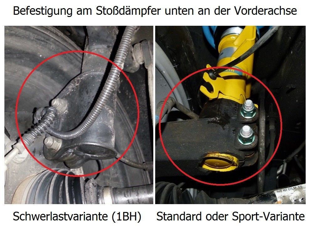 Twin Monotube Höherlegungsfahrwerk für T5 - T6 - T6.1 Bitte beachten Sie: geeignet für Fahrzeuge: - ohne permanent erhöhter Hinterachslast bspw. California, Camper, Werkstattwagen uvm. - dauerhafte Leergewichtsachslast an der HA von max. 949 kg - bei Fahrzeugen mit DCC muss diese fachgerecht stillgelegt werden. - Nur für Fahrzeuge mit Schwerlastfahrwerk Lieferumfang: 1x Twin Monotube Höherlegungsfahrwerk TMP-H11-K32-T5T6.1