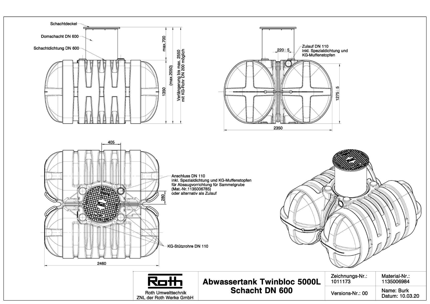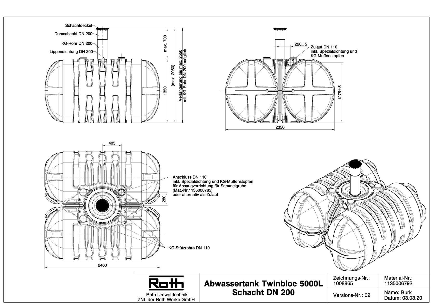 Roth Twinbloc Abwassersammelgrube 5000 Liter Schacht 200 - 600