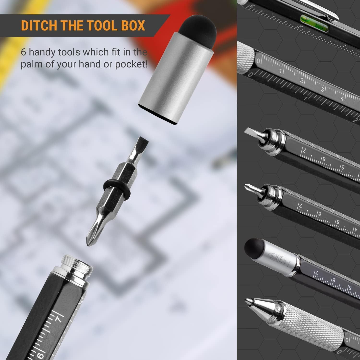 TwitFish 6-in-1 Stylus Pen mit Schraubendreher, Lineal, Wasserwaage und mehr (1 Stk.)